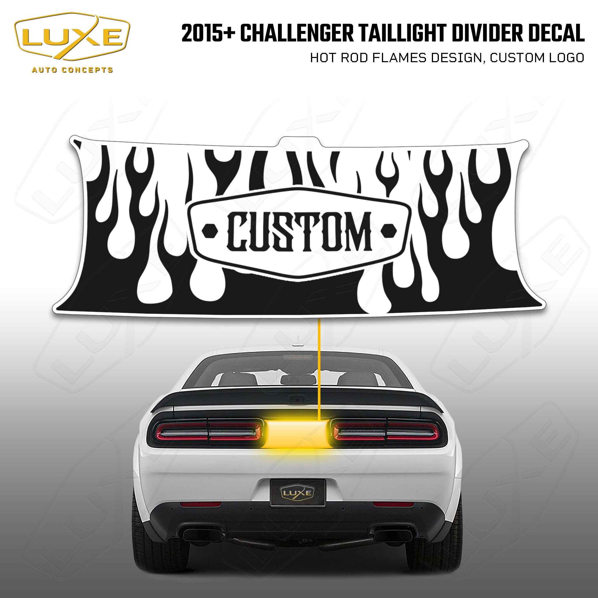2015+ challenger taillight center divider decal - hot rod flames design, custom logo kit