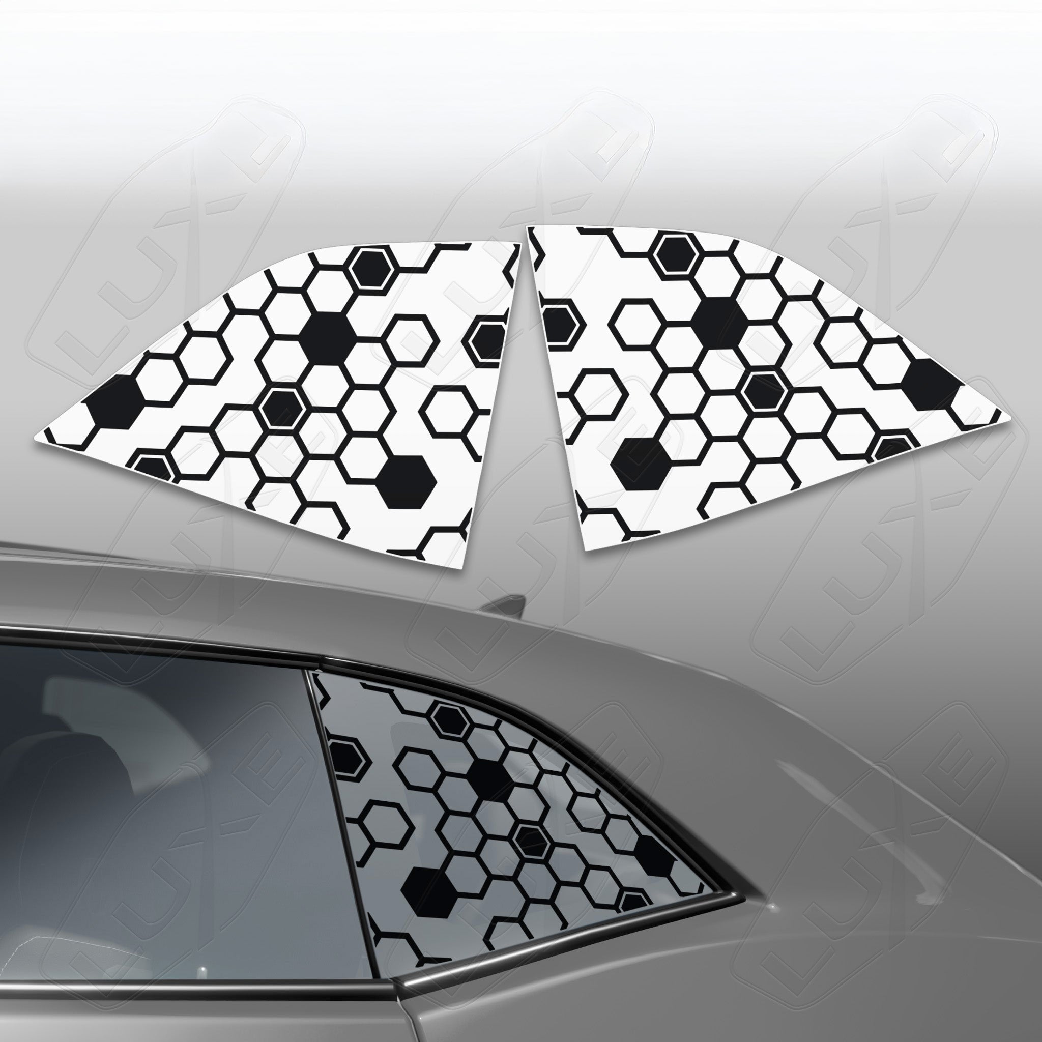 2008+ challenger rear quarter window cut vinyl decals - broken honeycomb design