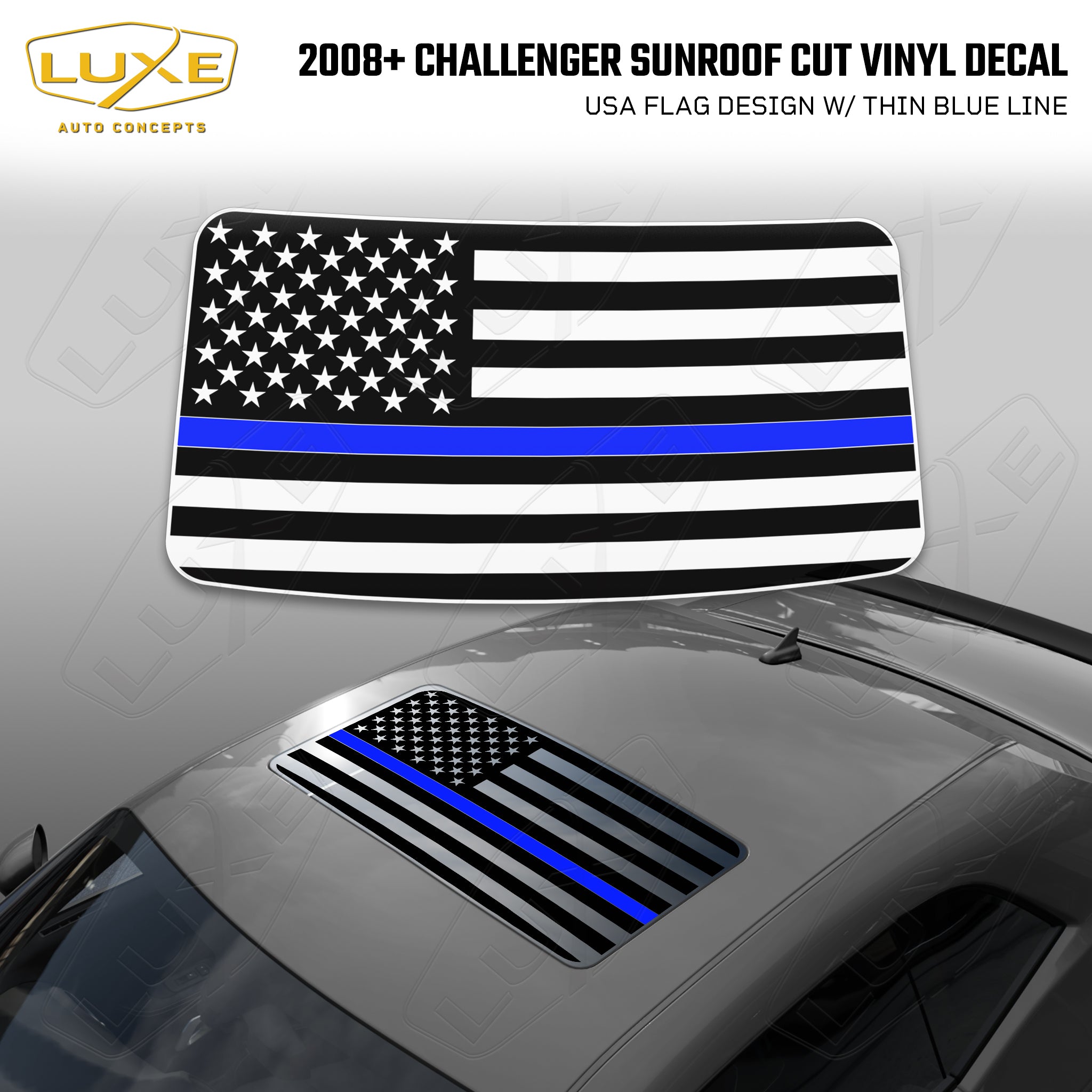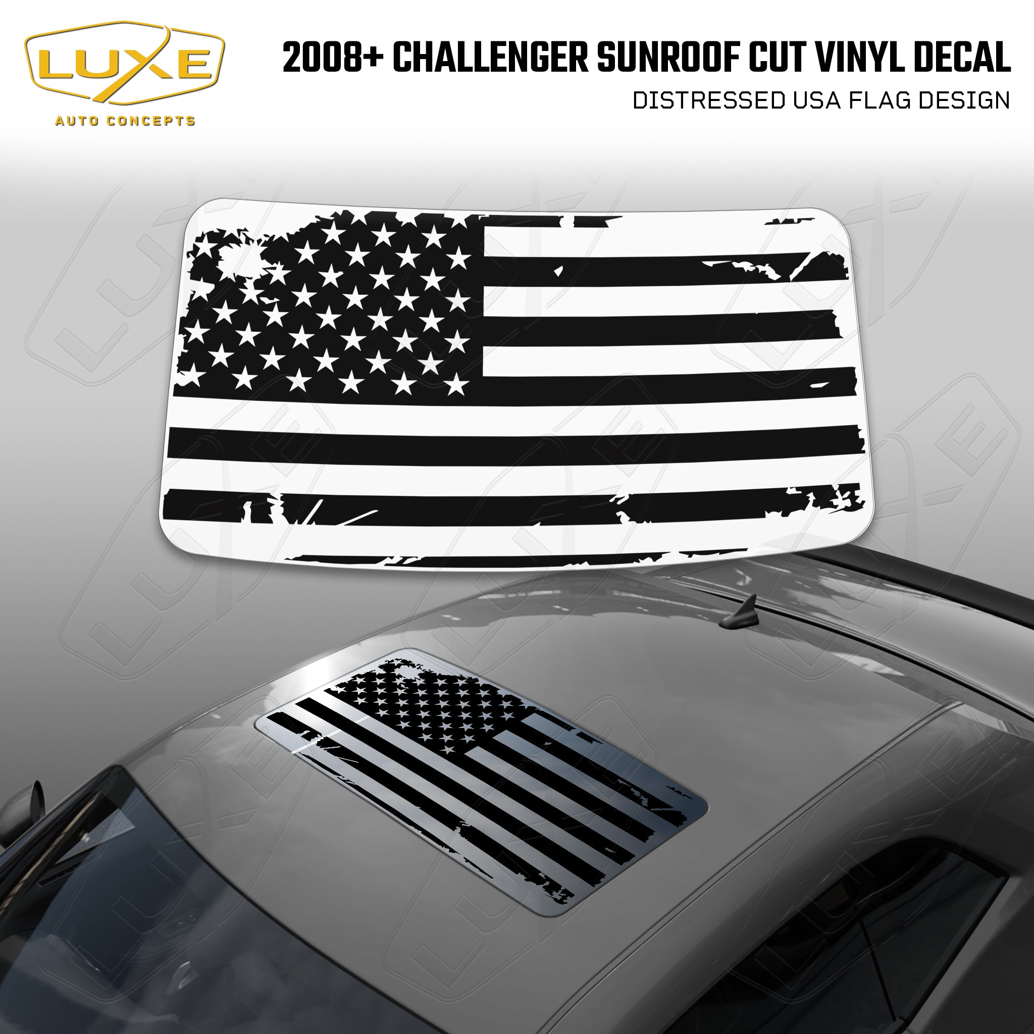 Introducing our Distressed USA Flag design for the Challenger sunroof, made with high-quality matte black vinyl that's guaranteed to make your vehicle...