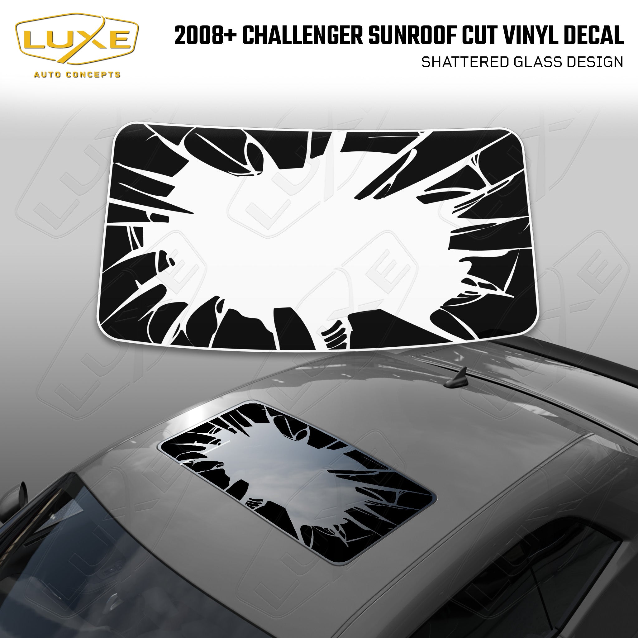 Introducing our shattered glass design for the Challenger sunroof, made with high-quality matte black vinyl that's guaranteed to make your vehicle...