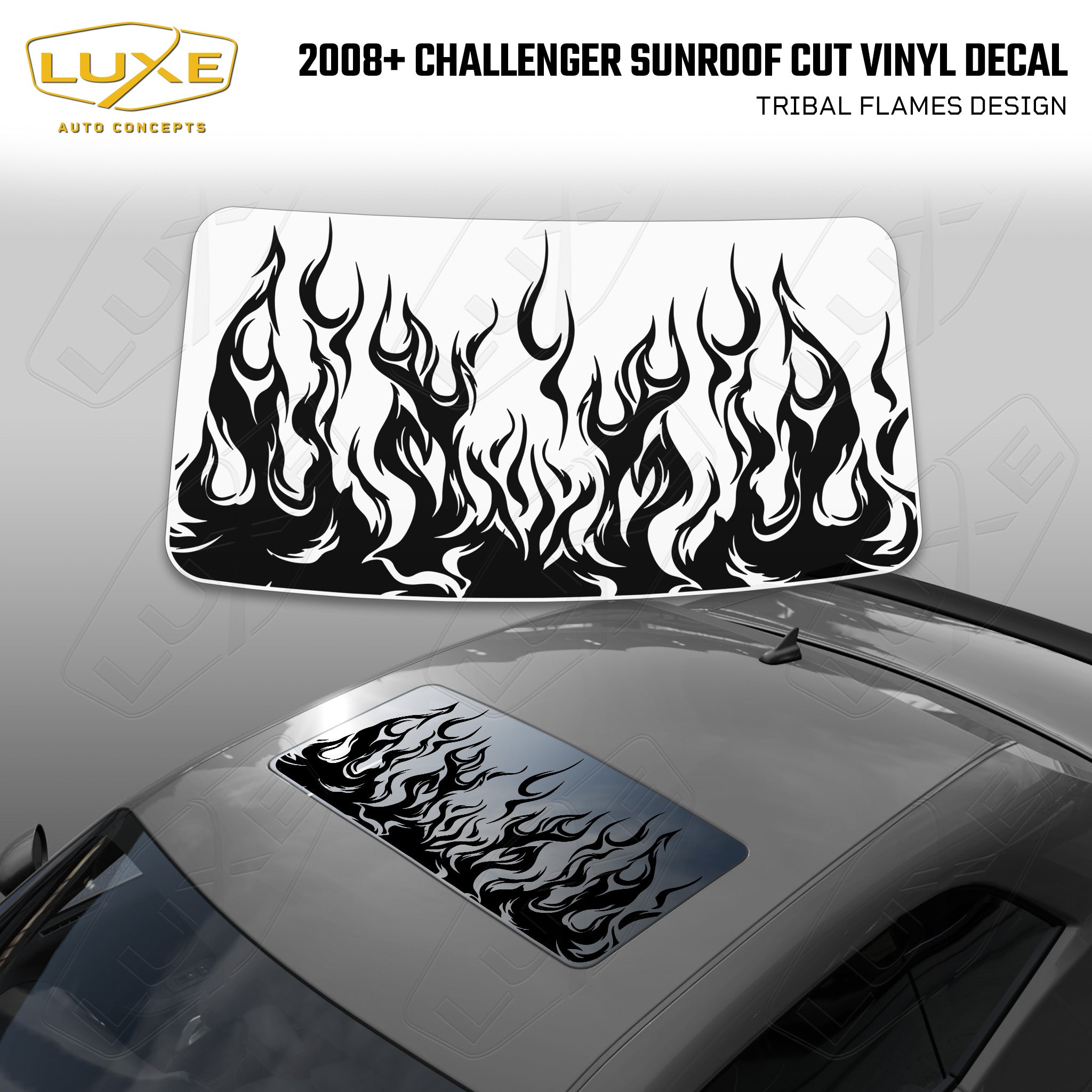 Introducing our wicked flames design for the Challenger sunroof made with high-quality matte black vinyl that's guaranteed to make your vehicle stand out....