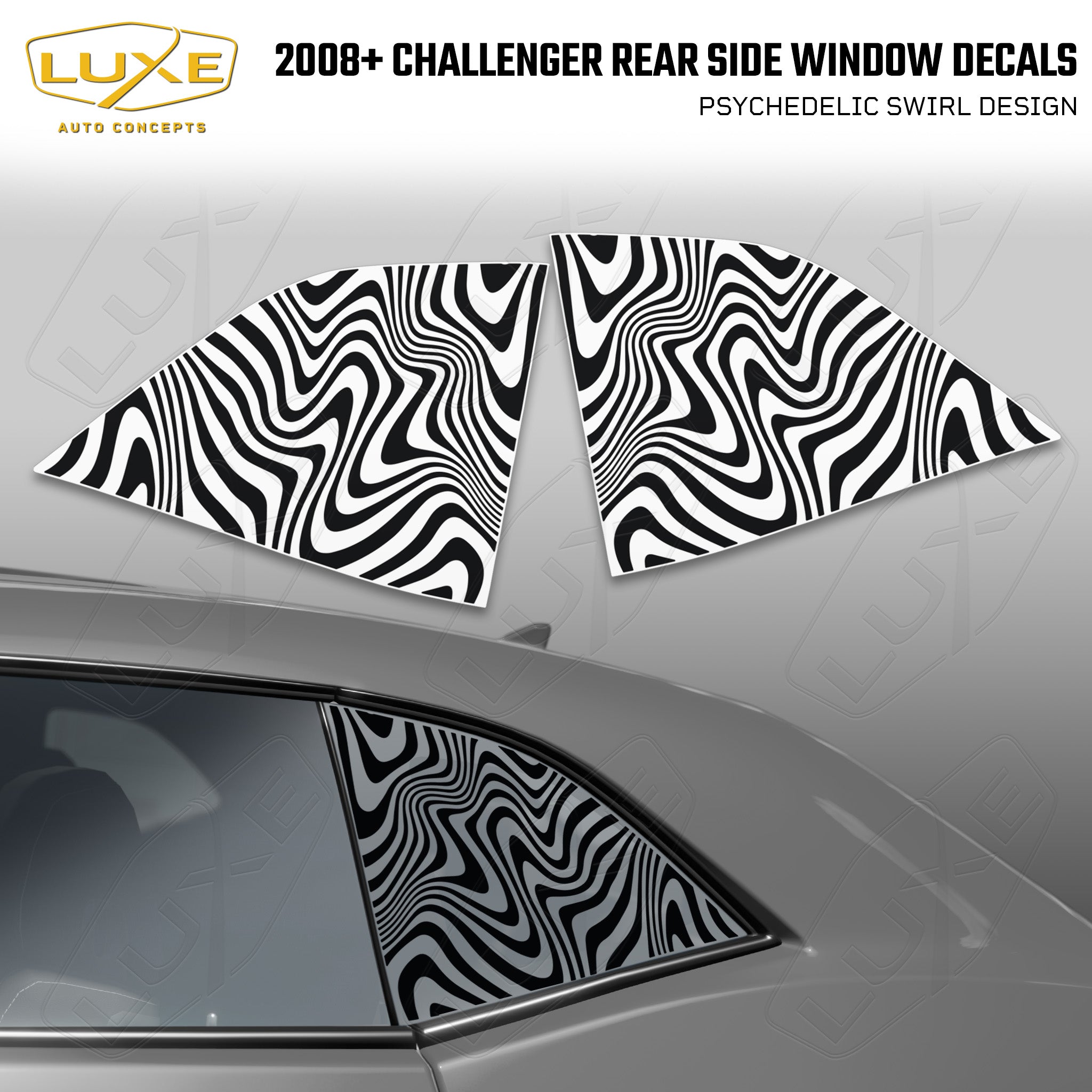 Description Fitment Introducing our psychedelic swirl design for the Challenger rear side glass, made with high-quality matte black vinyl that's guaranteed to make...