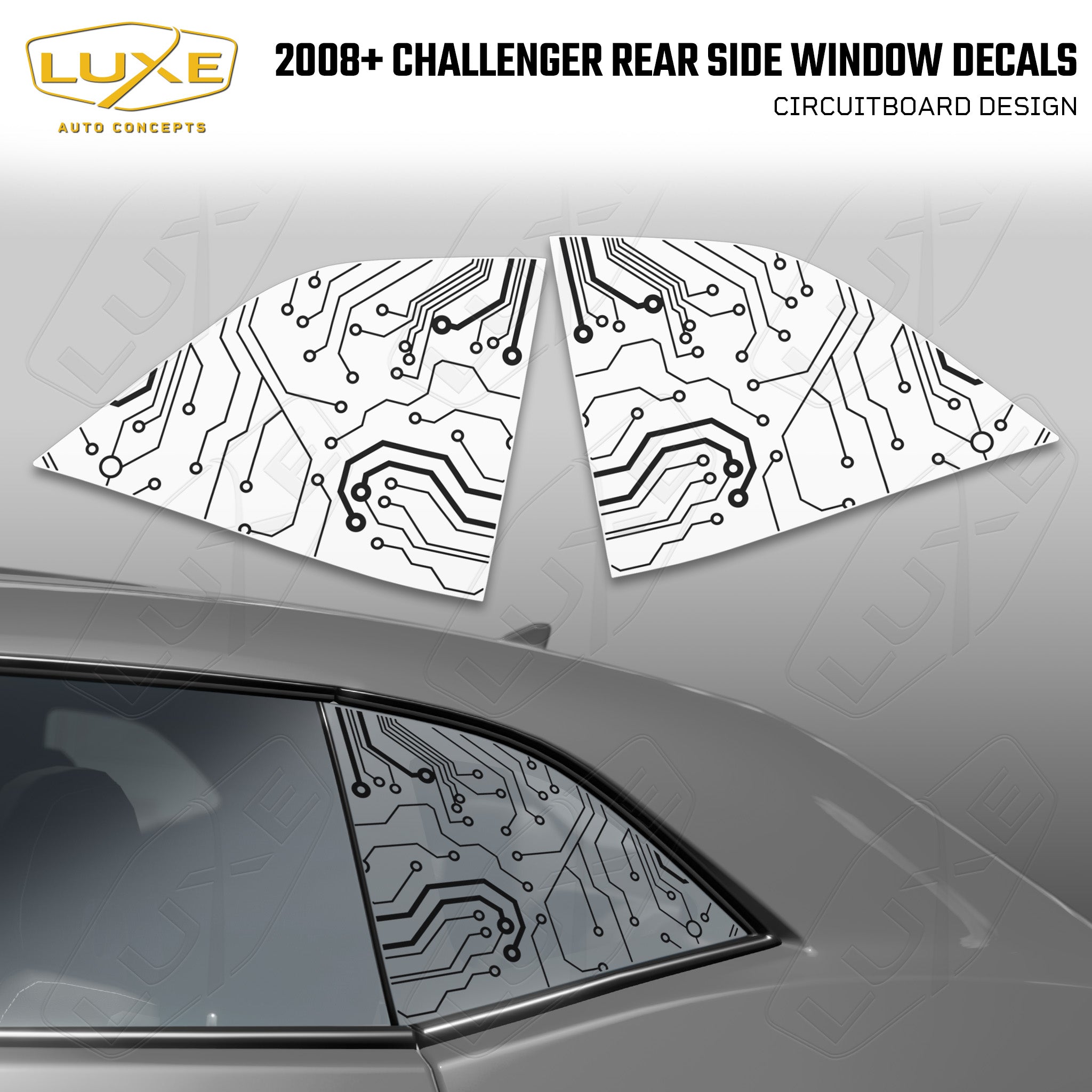 Description Fitment Introducing our circtuit design for the Challenger rear side glass, made with high-quality matte black vinyl that's guaranteed to make...
