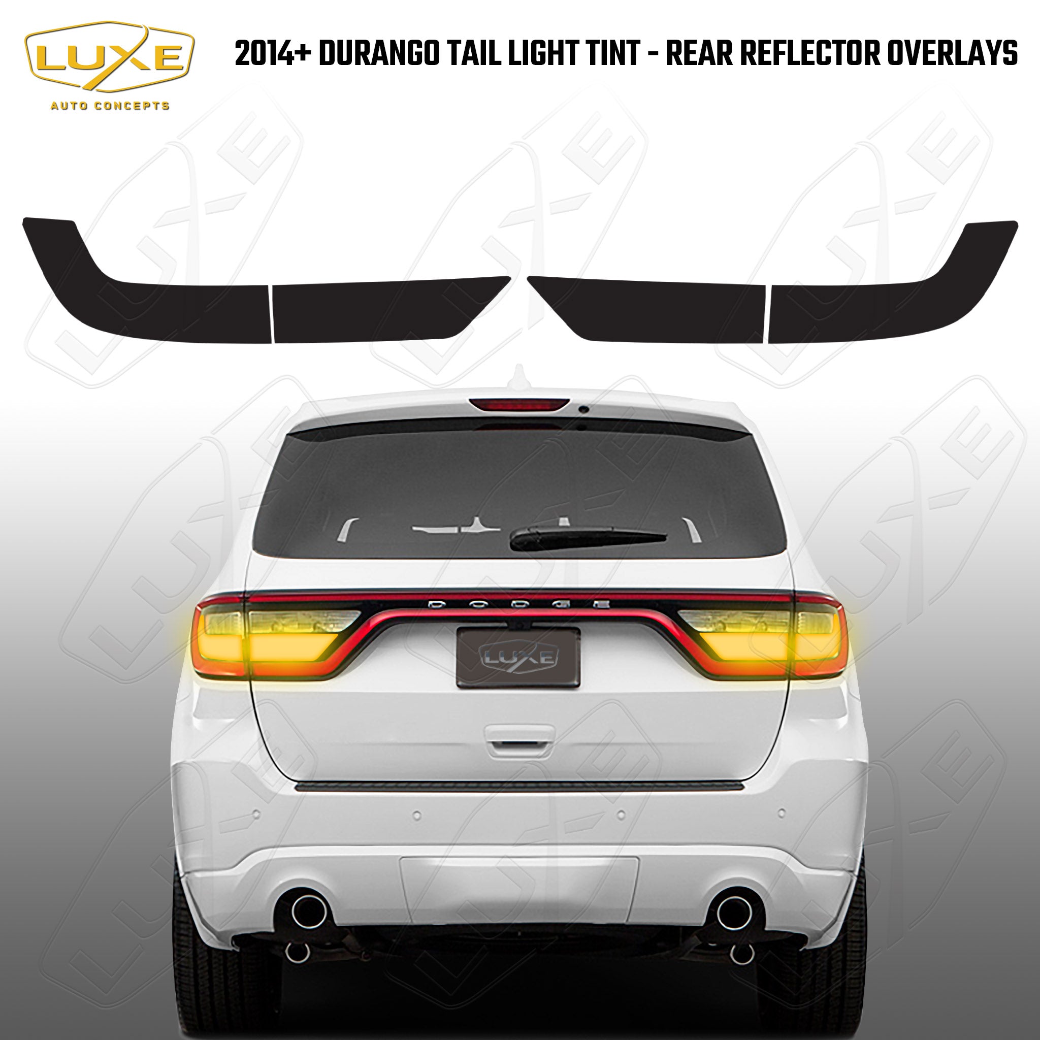This 4-piece tail light tint kit includes custom fit overlays for your 2011+ Dodge Durango. This covers only the red rear reflectors strip, leaving the clear reverse/blinker/brake light visible. Everything from the shape of the overlay to the LightWrap tint is designed by Luxe to be the best on the market.  We make these overlays using the same LightWrap vinyl that we sell to professional installers all over the world.  It will not shrink and crack like calendar vinyl or Chinese-made vinyl, and can be removed without causing any damage to the vehicle.