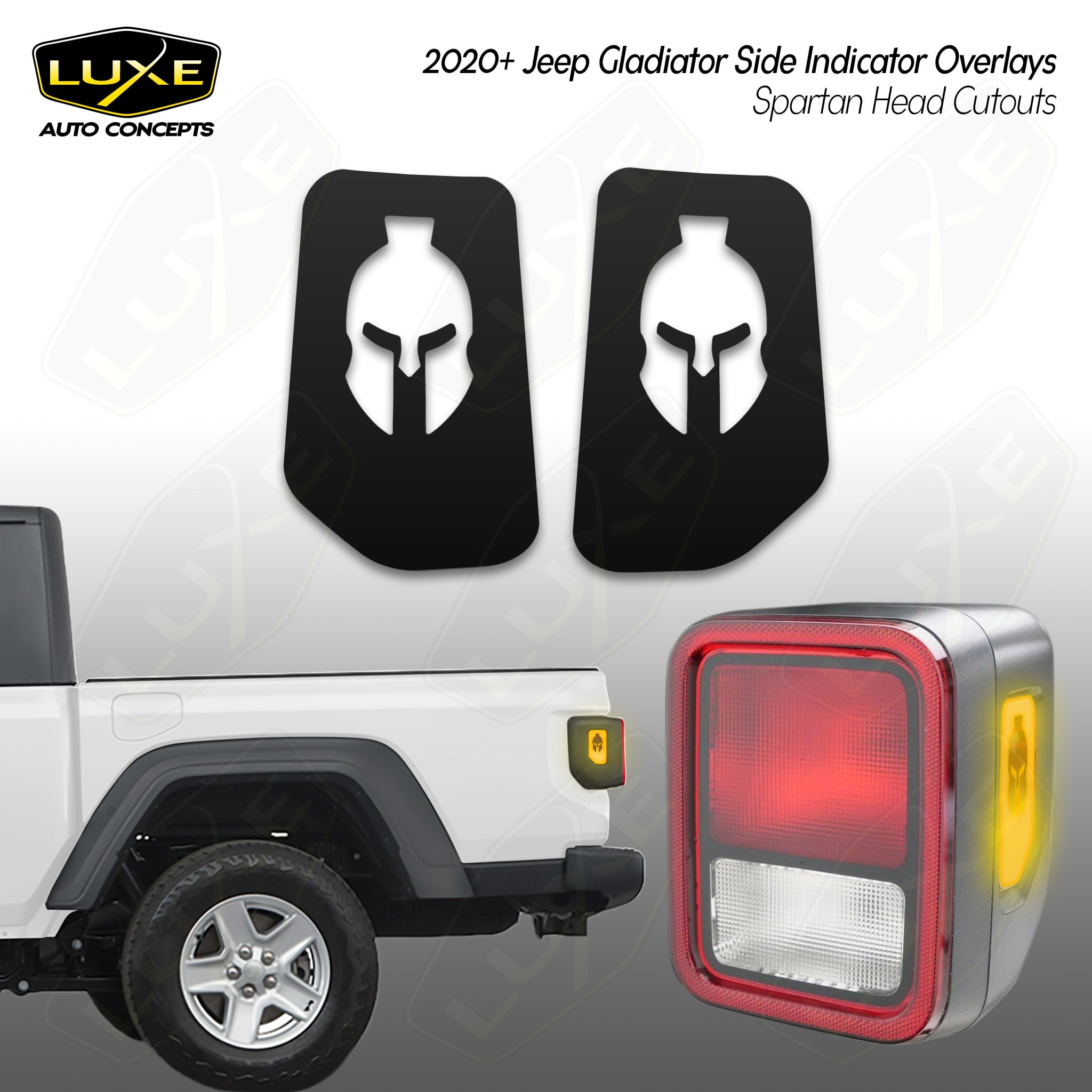Jeep gladiator jt tail light overlays - brake and reverse lights kit spartan cutout kit
