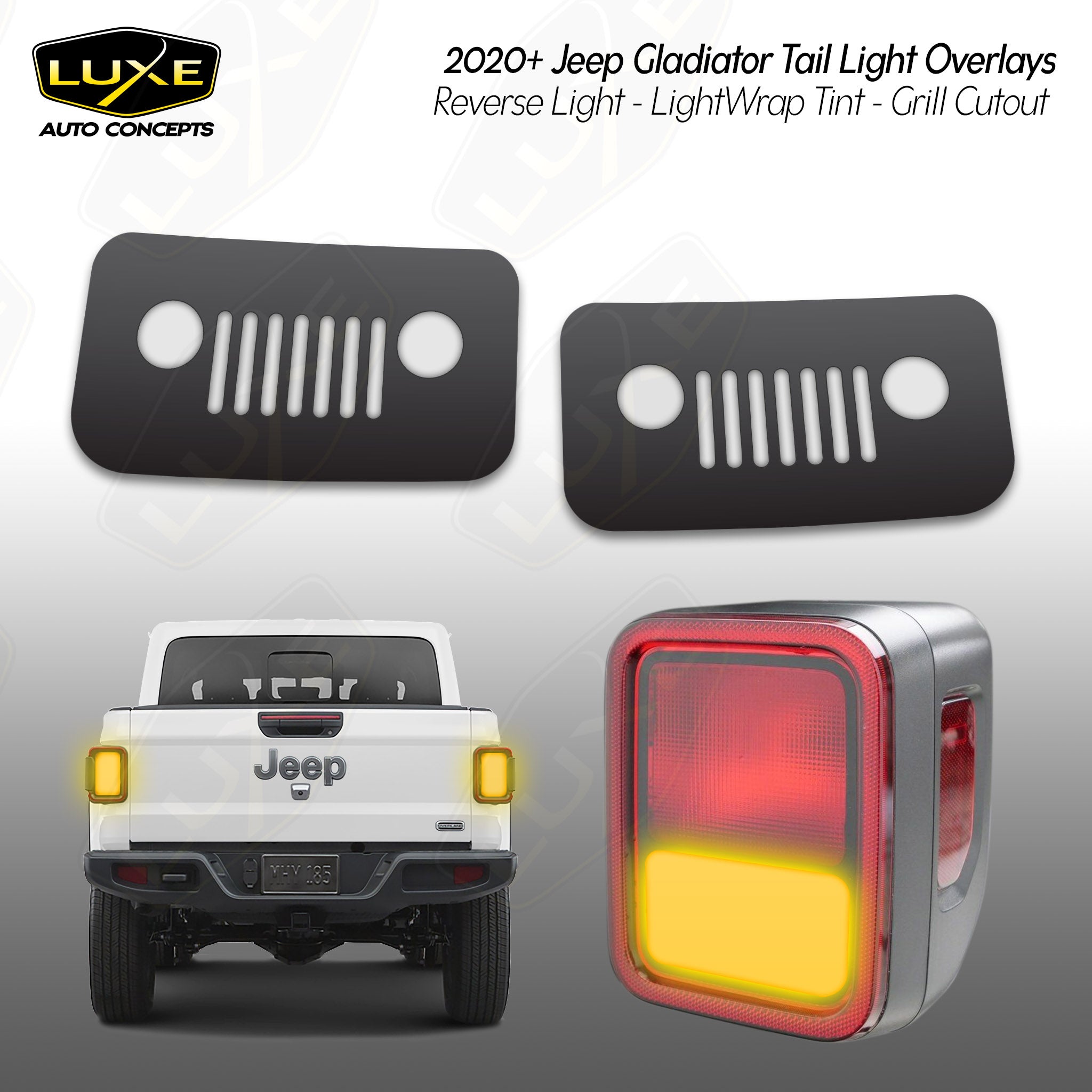 Jeep gladiator jt tail light overlays - reverse lights grill cutout kit