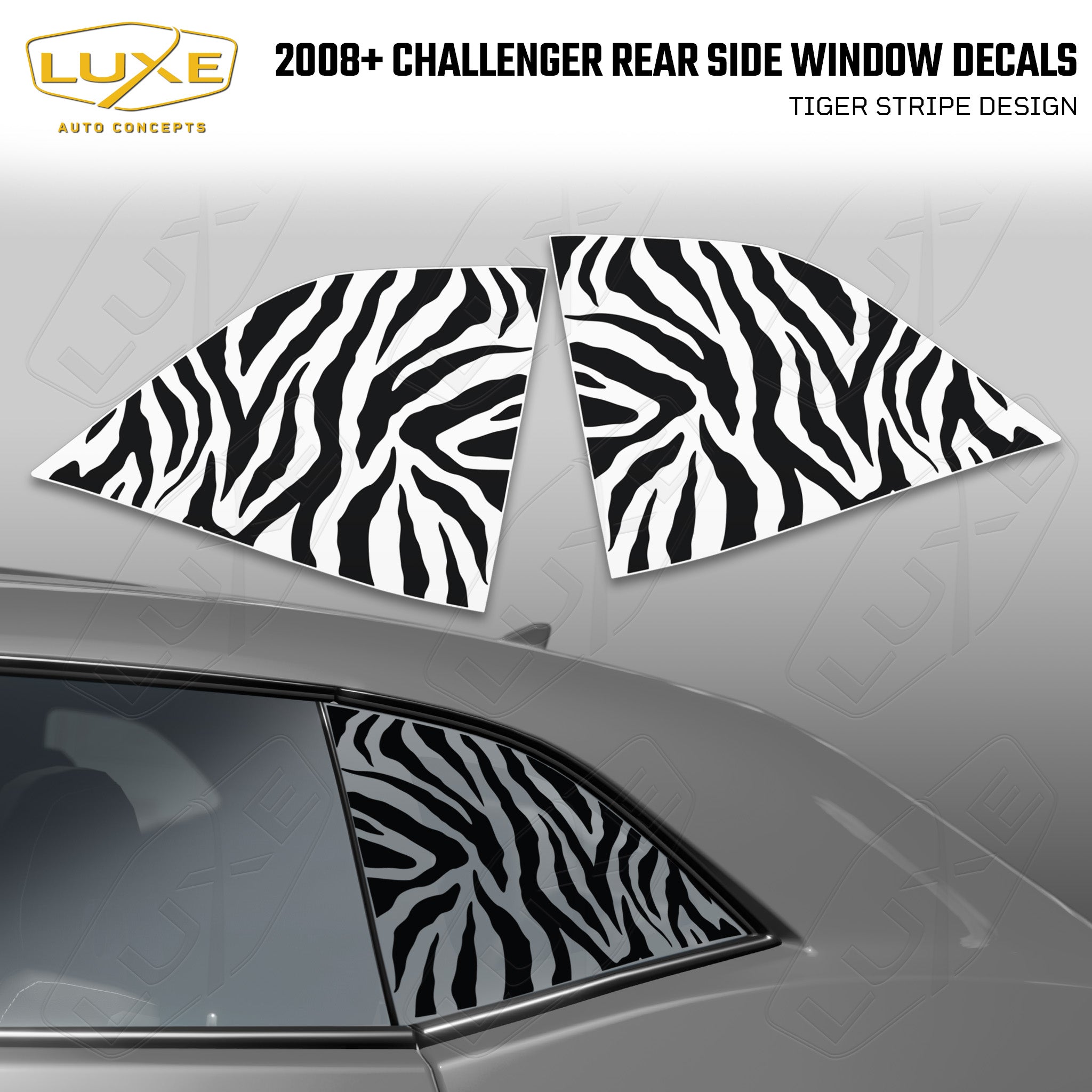 Description Fitment Introducing our tiger stripe design for the Challenger rear side glass, made with high-quality matte black vinyl that's guaranteed...