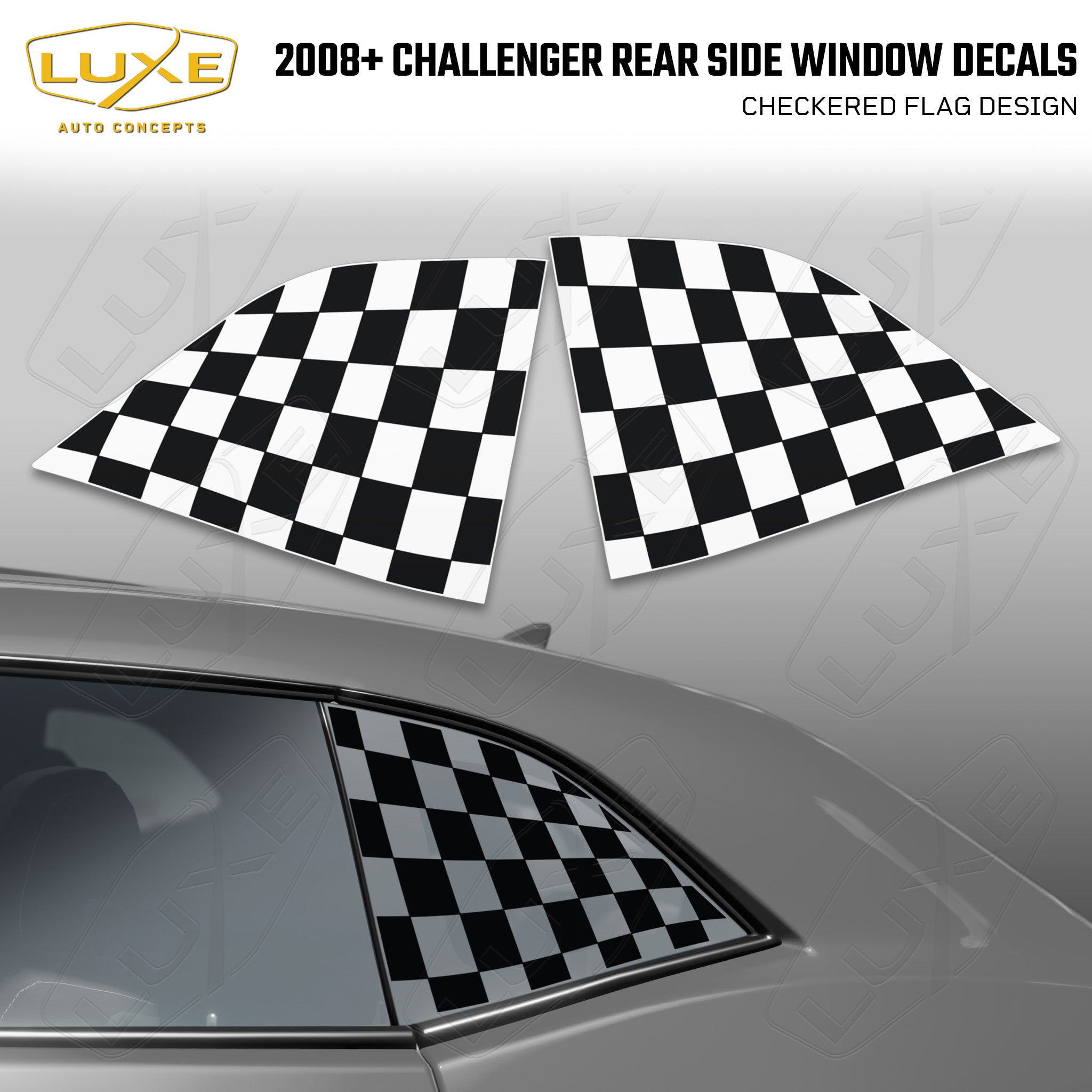 2008+ challenger rear quarter window cut vinyl decals - checkered flag design