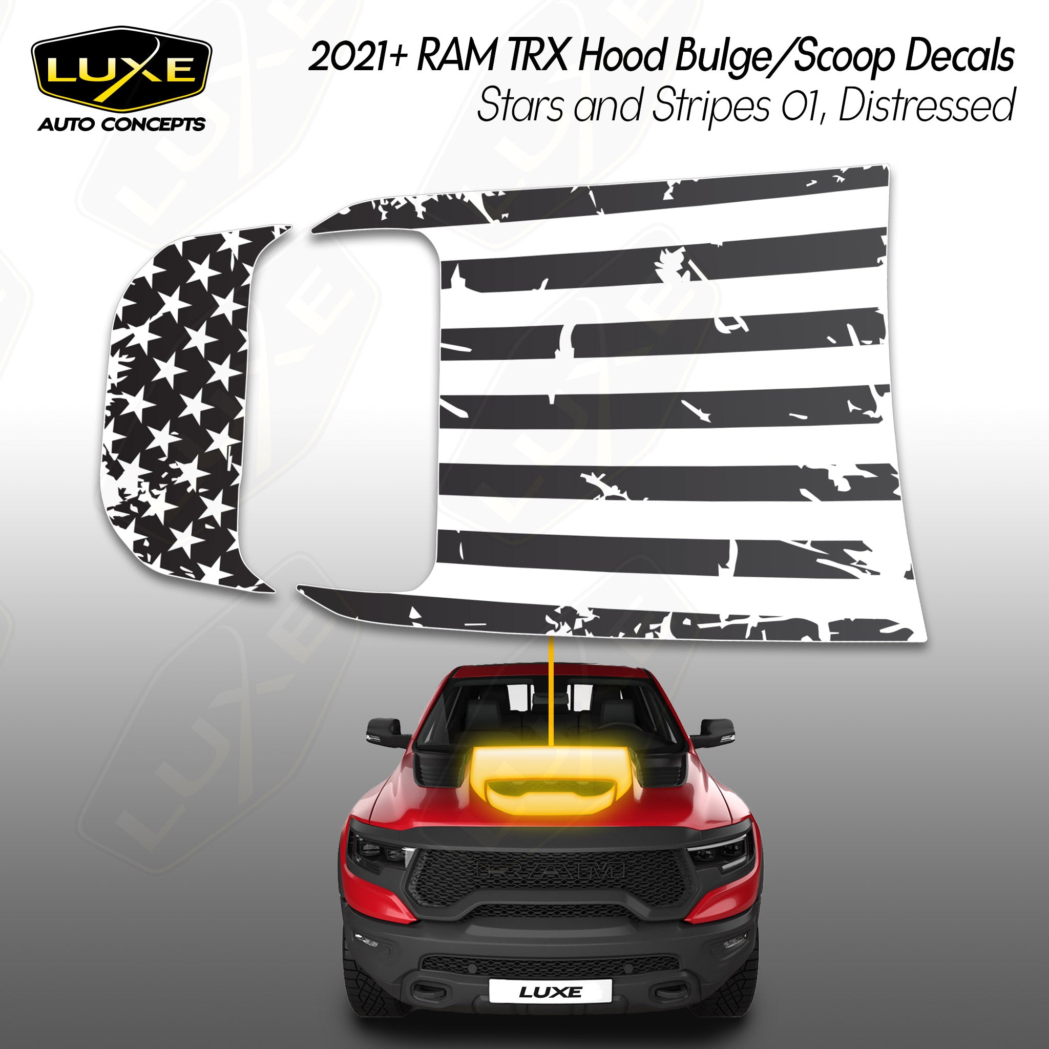 Ram trx hood bulge/scoop decals kit - stars and stripes 1, distressed