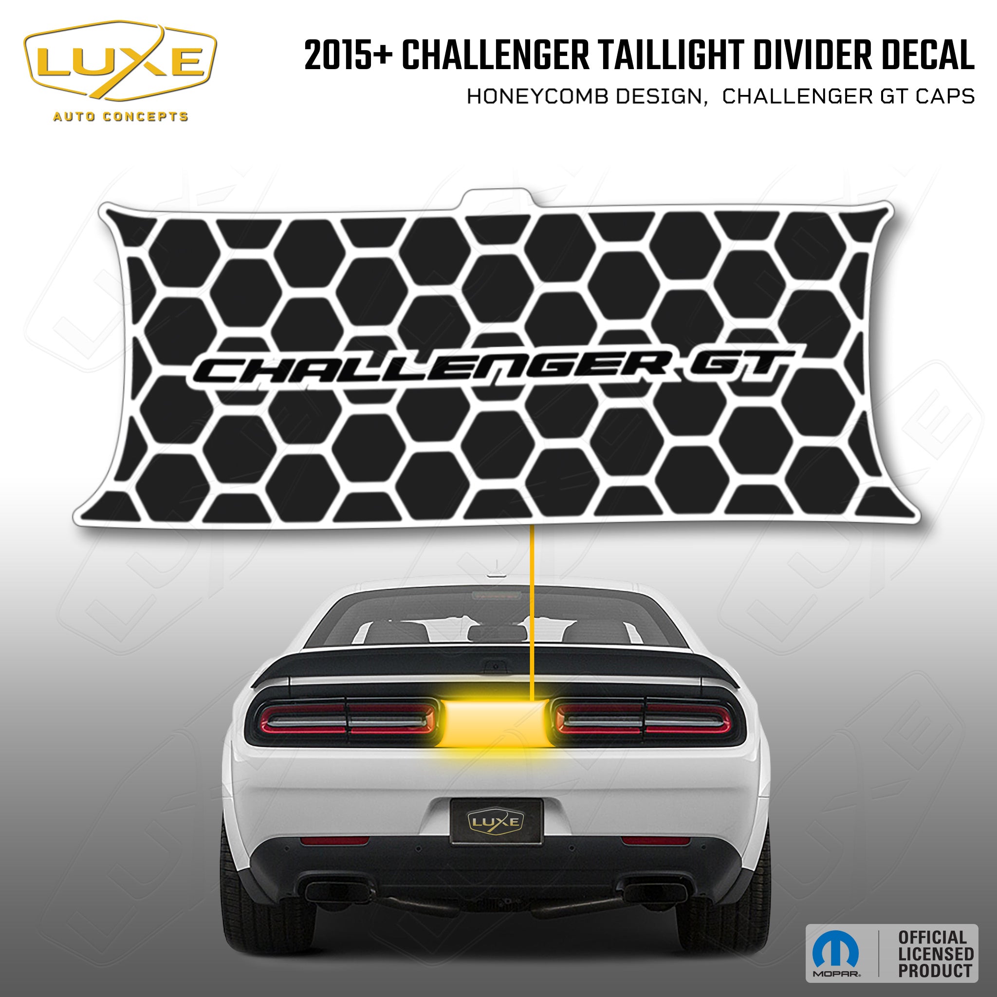 2015+ challenger taillight center divider decal - honeycomb design, challenger gt caps kit