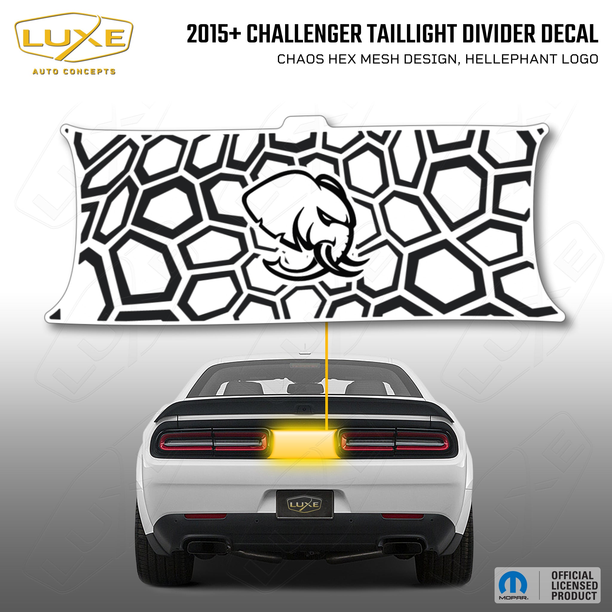 2015+ challenger taillight center divider decal - chaos hex mesh design, hellephant logo kit
