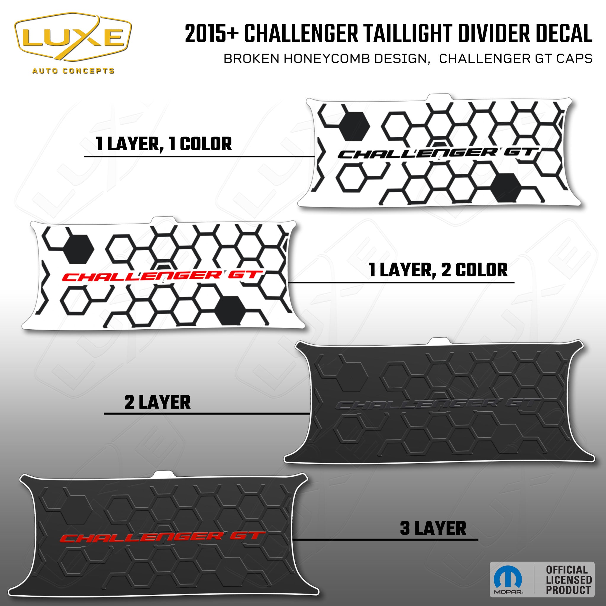 2015+ challenger taillight center divider decal - broken honeycomb design, challenger gt caps kit