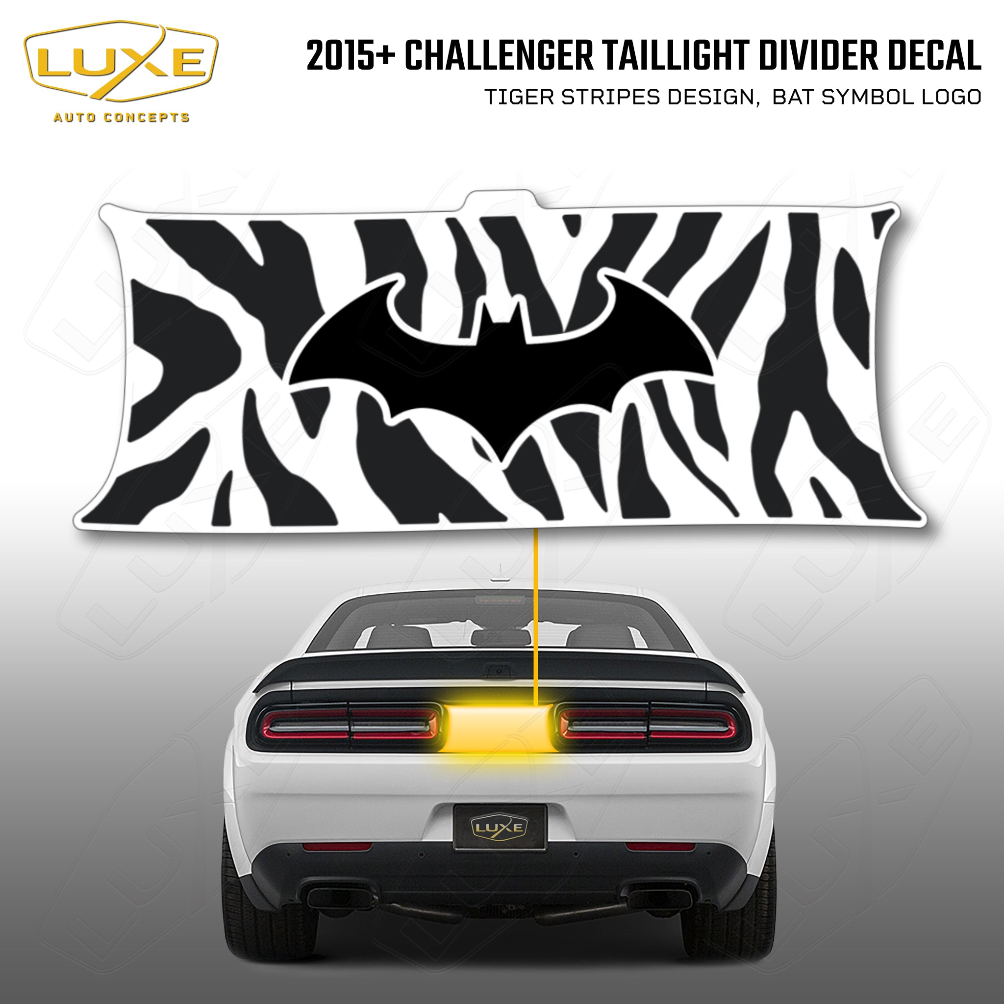 2015+ challenger taillight center divider decal - tiger stripes design, bat symbol kit
