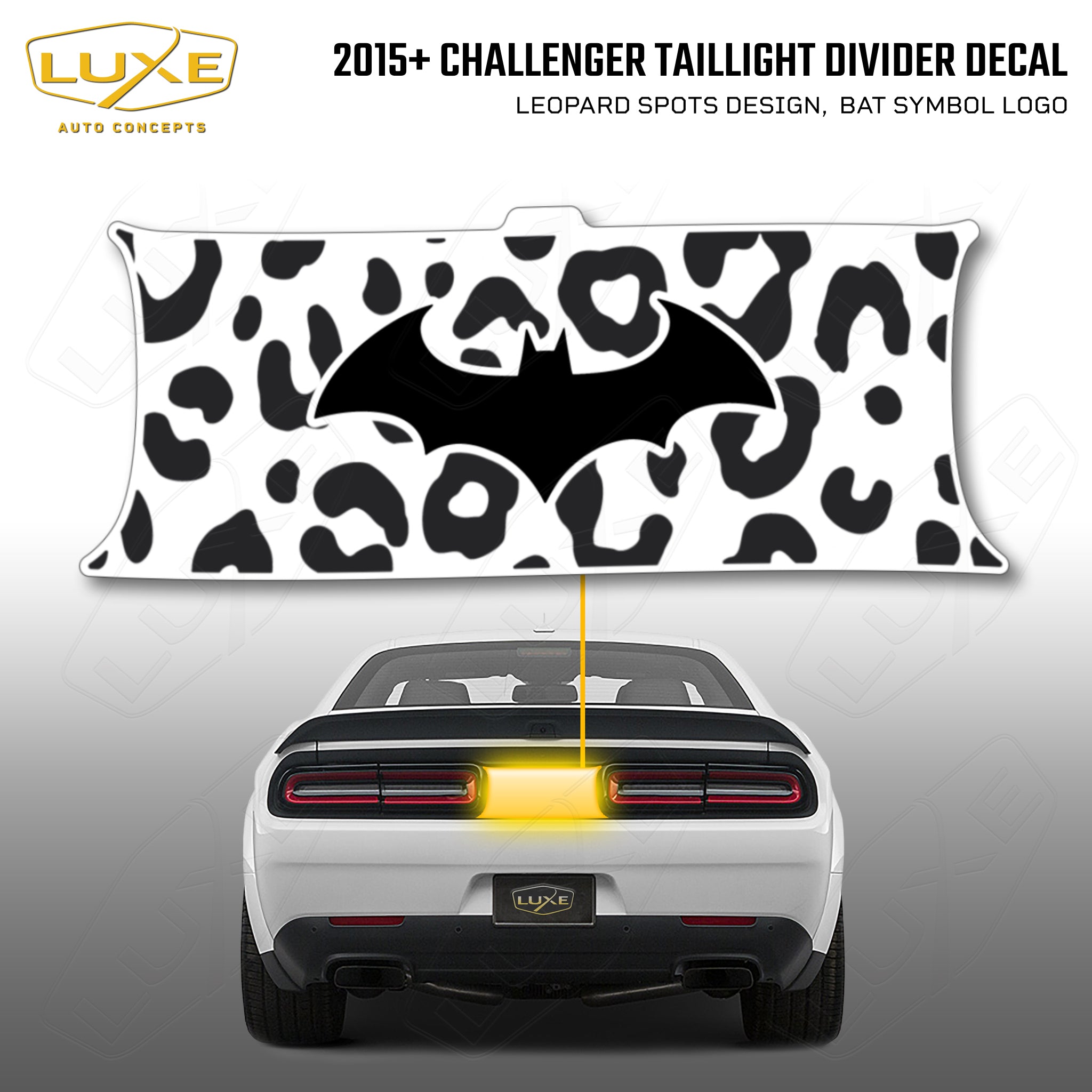 2015+ challenger taillight center divider decal - leopard spots design, bat symbol kit