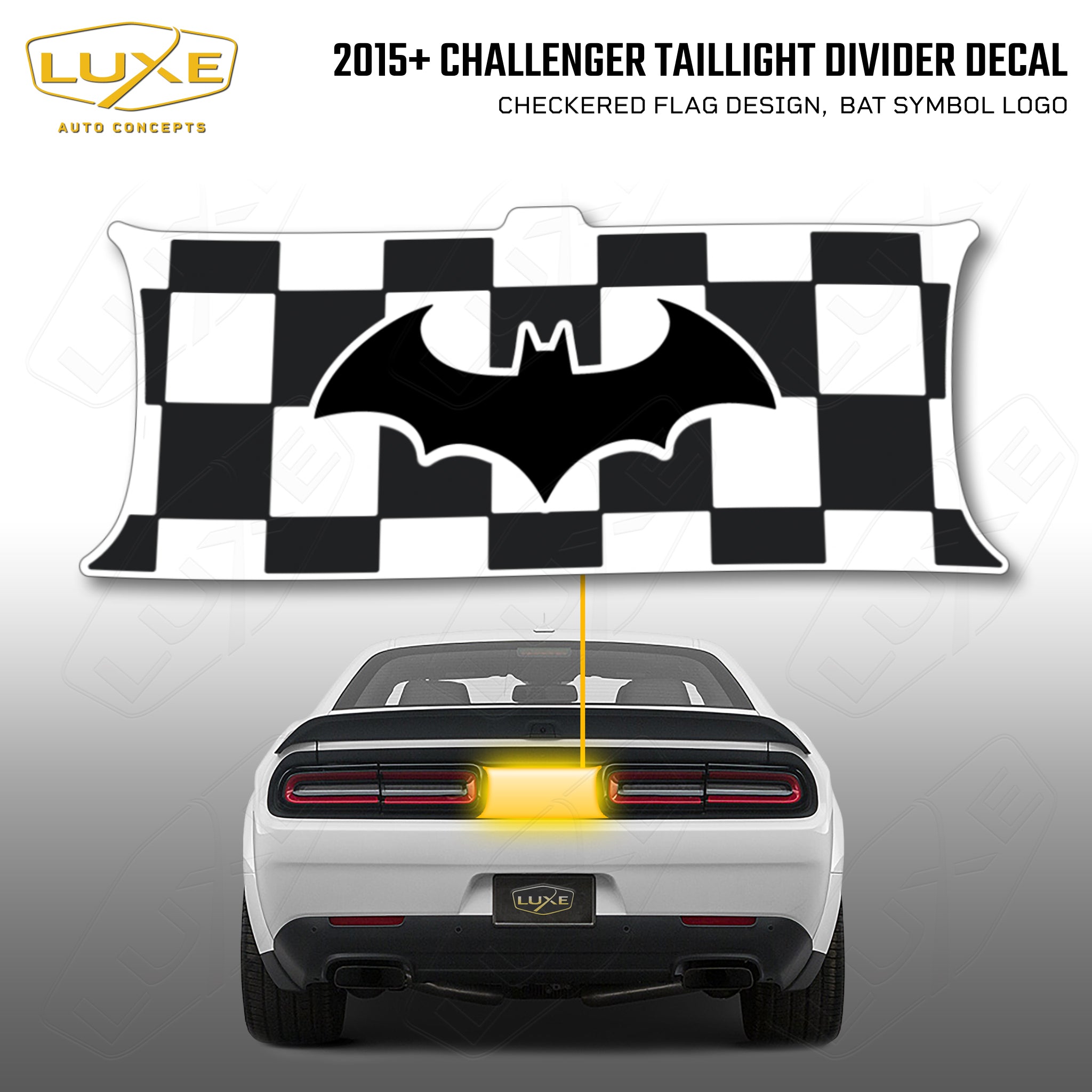 2015+ challenger taillight center divider decal - checkered flag design, bat symbol kit