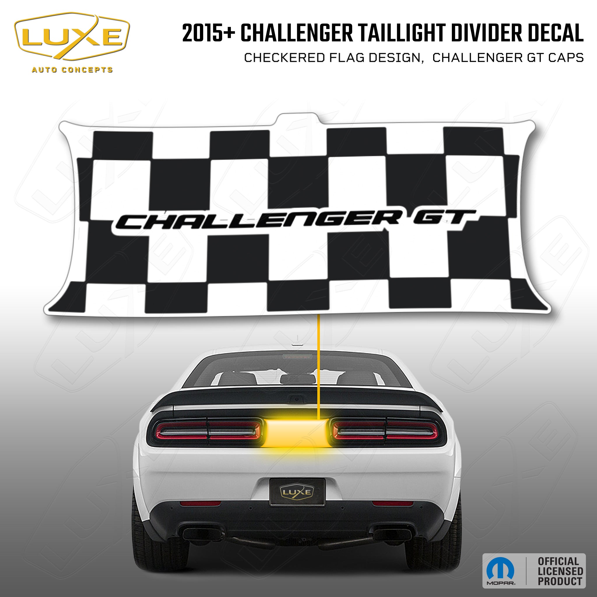 2015+ challenger taillight center divider decal - checkered flag design, challenger gt caps kit