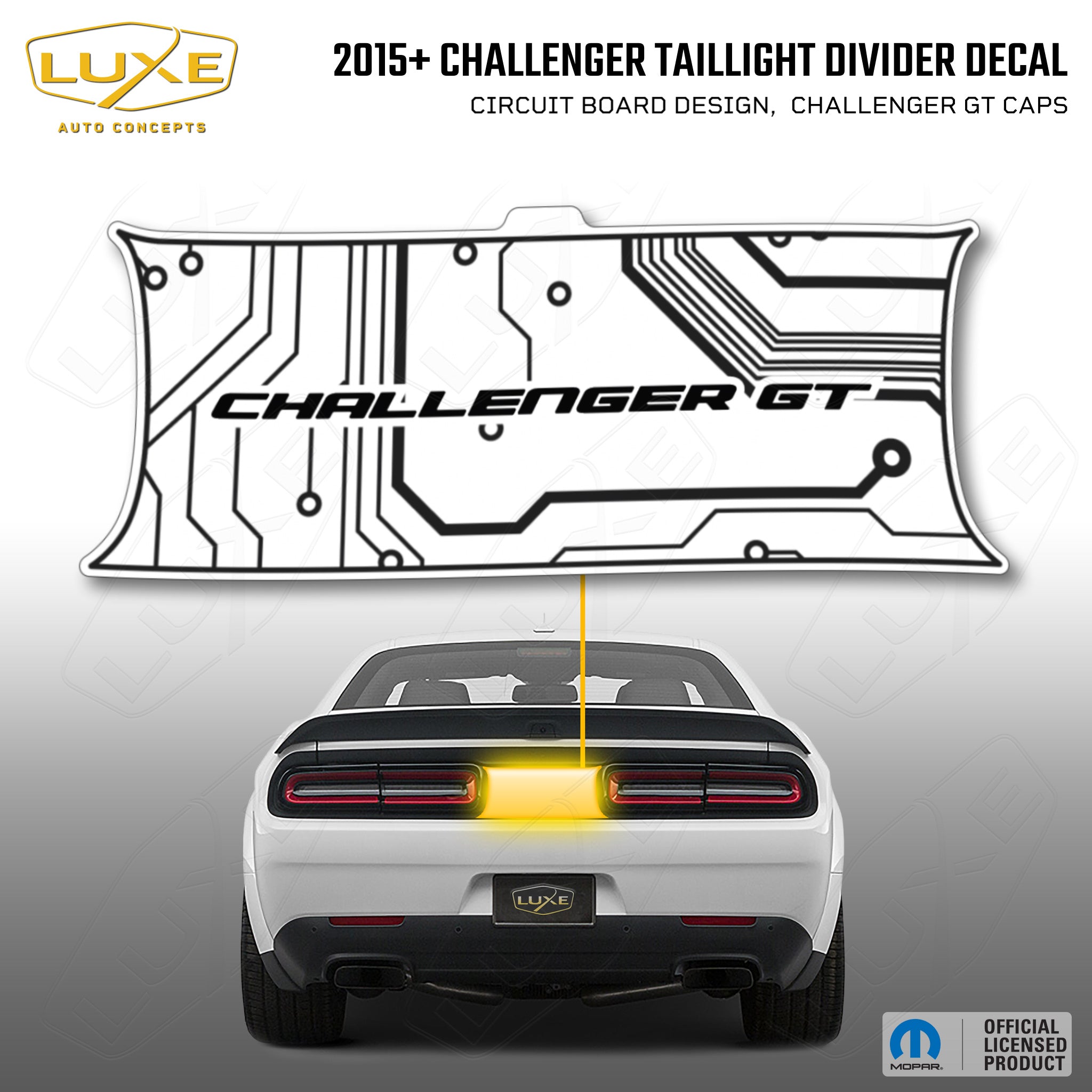 2015+ challenger taillight center divider decal - circuit board design, challenger gt caps kit