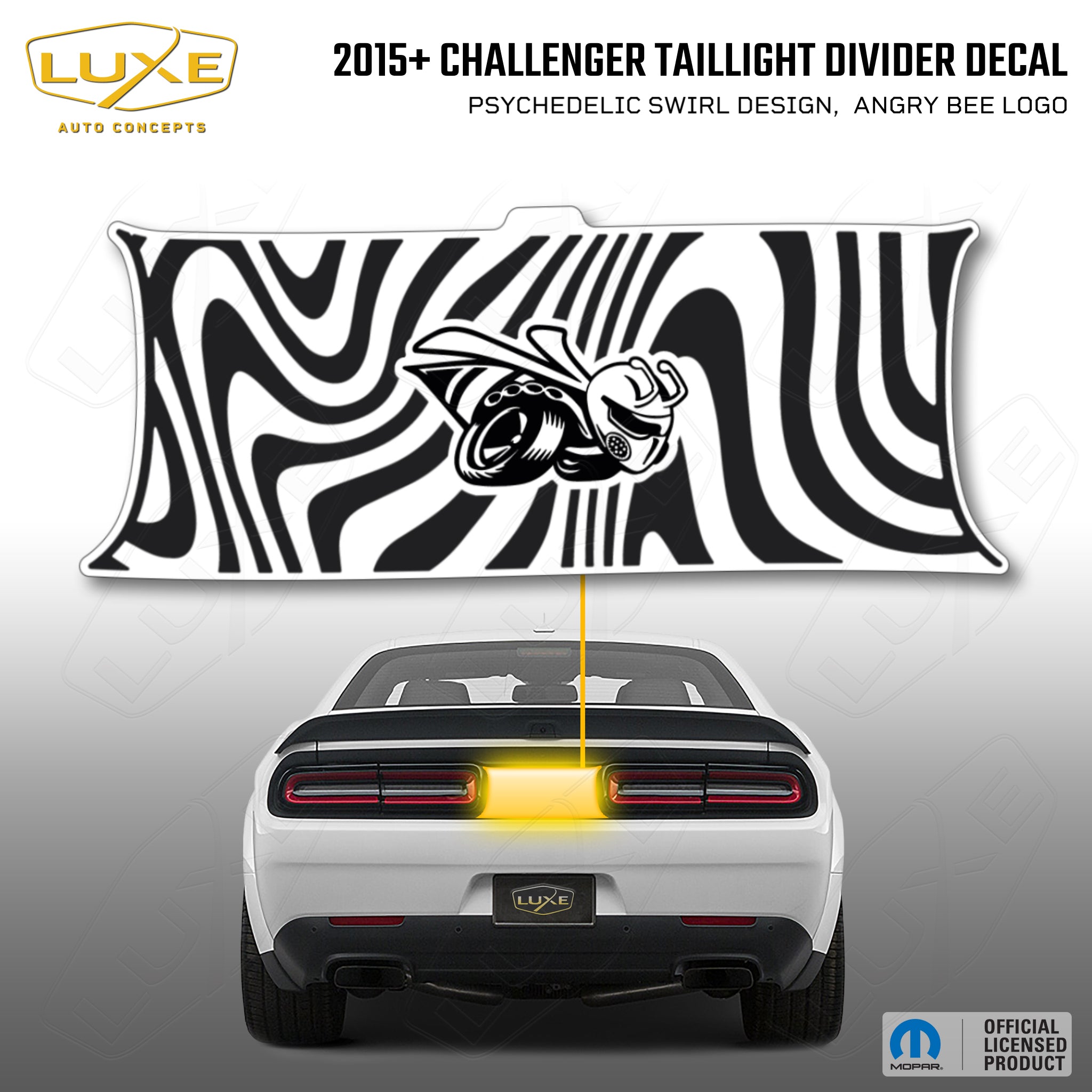2015+ challenger taillight center divider decal - psychedelic swirl design, angry bee logo kit