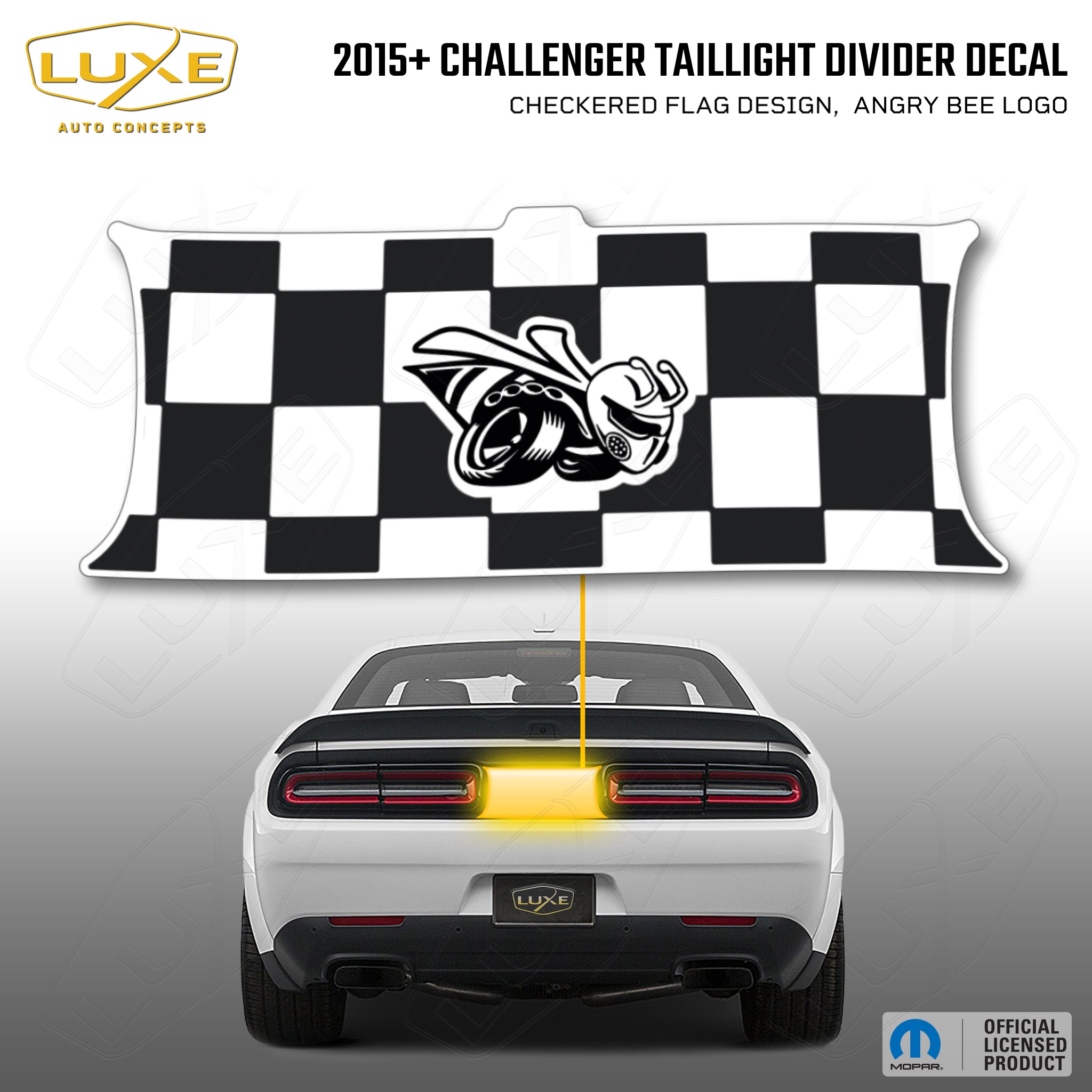 2015+ challenger taillight center divider decal - checkered flag design, angry bee logo kit