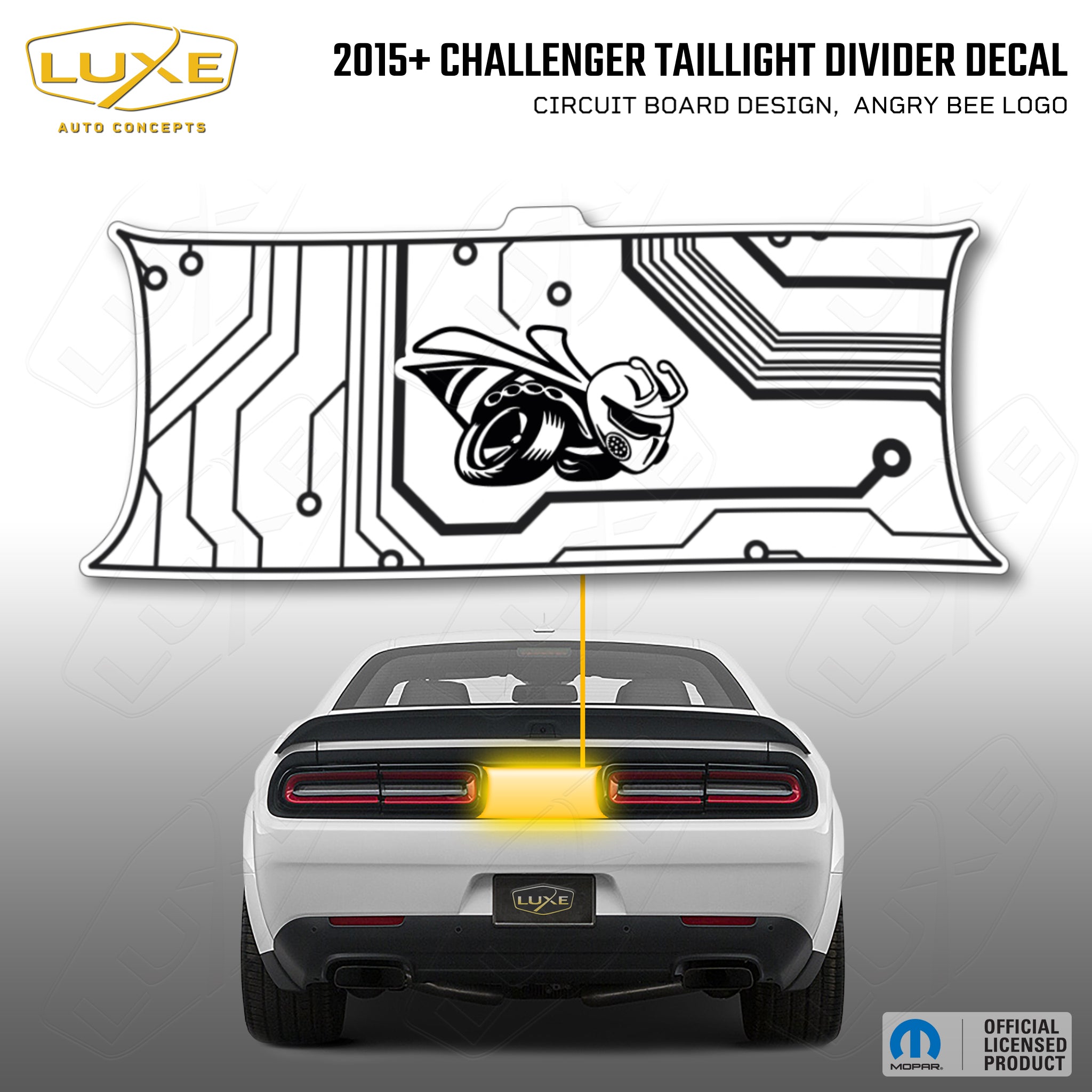 2015+ challenger taillight center divider decal - circuit board design, angry bee logo kit