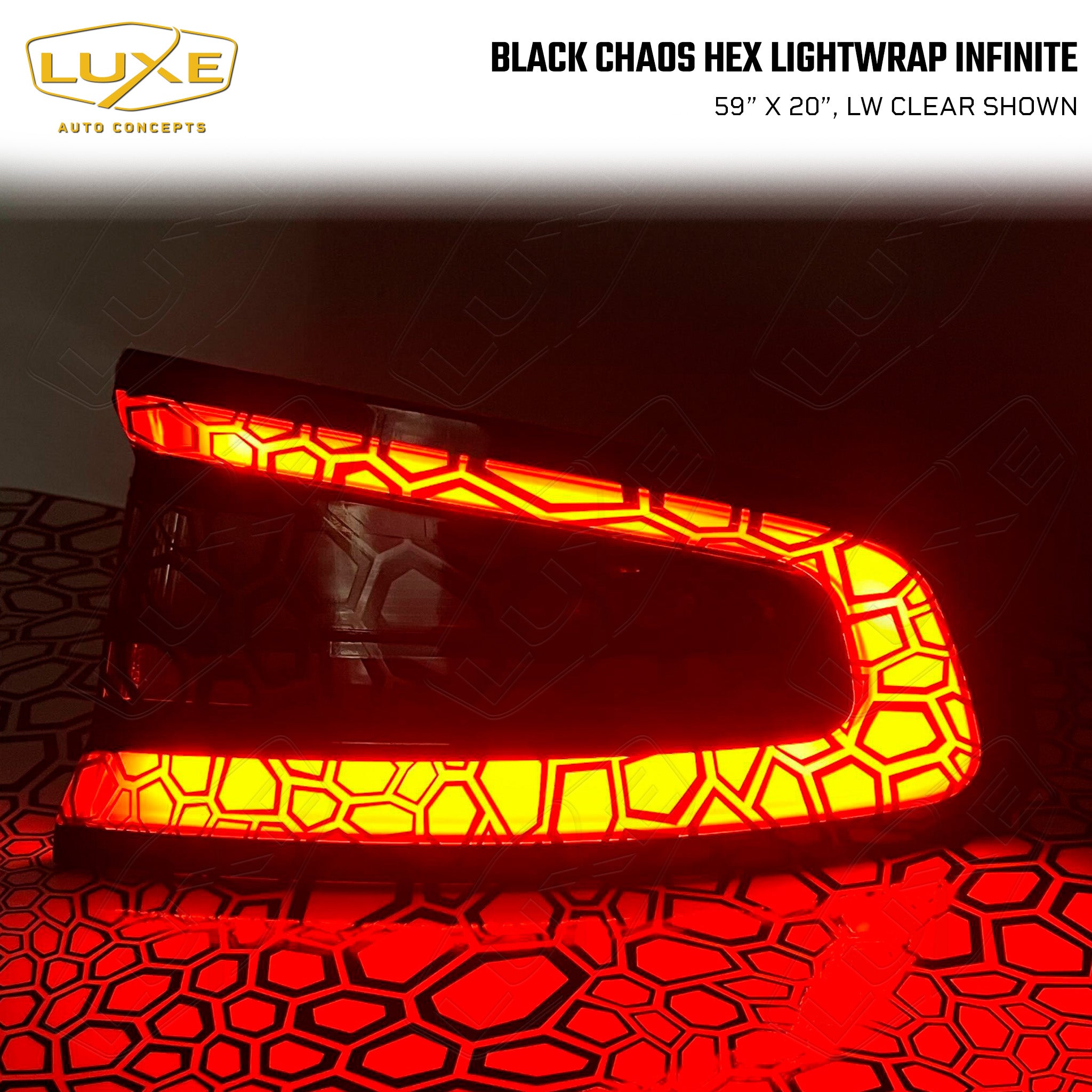 Don't settle for cut and weeded vinyl sheets for your lights made from craft vinyl! LightWrap Infinite products feature printed patterns created using the most advanced printing methods. The Chaos Hex design is printed on LightWrap air-release vinyl and provides an even, bubble-free application. Enjoy a tailor-made look for your car with no limits and an easy install.