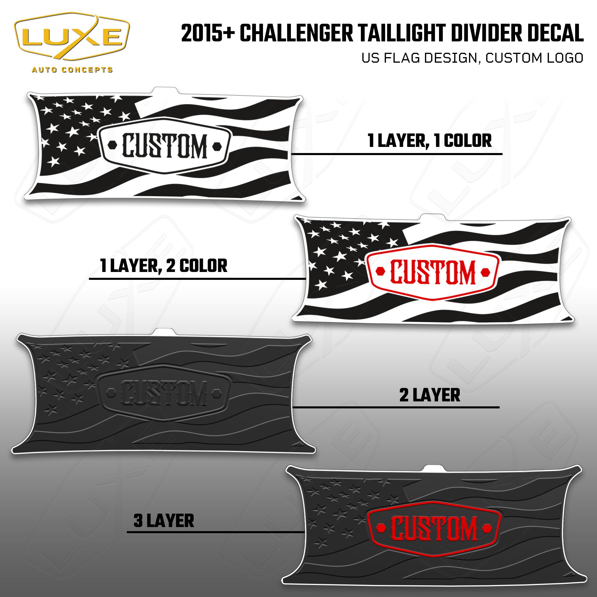2015+ Challenger Taillight Center Divider Decal - US Flag Design, Custom Logo