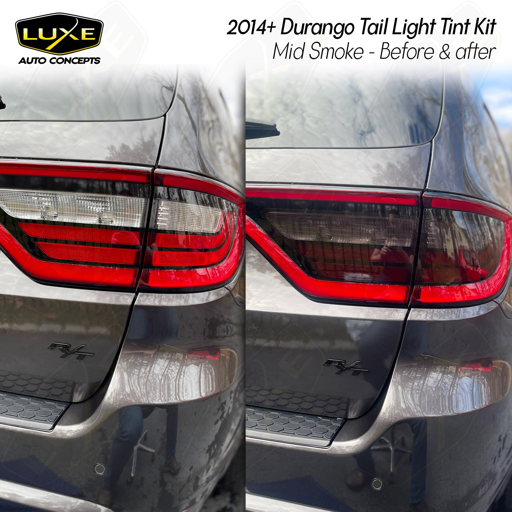 This 4-piece tail light tint kit includes custom fit overlays for your 2011+ Dodge Durango.  Everything from the shape of the overlay to the LightWrap tint is designed by Luxe to be the best on the market.  We make these overlays using the same LightWrap vinyl that we sell to professional installers all over the world.  It will not shrink and crack like calendar vinyl or Chinese-made vinyl, and can be removed without causing any damage to the vehicle.