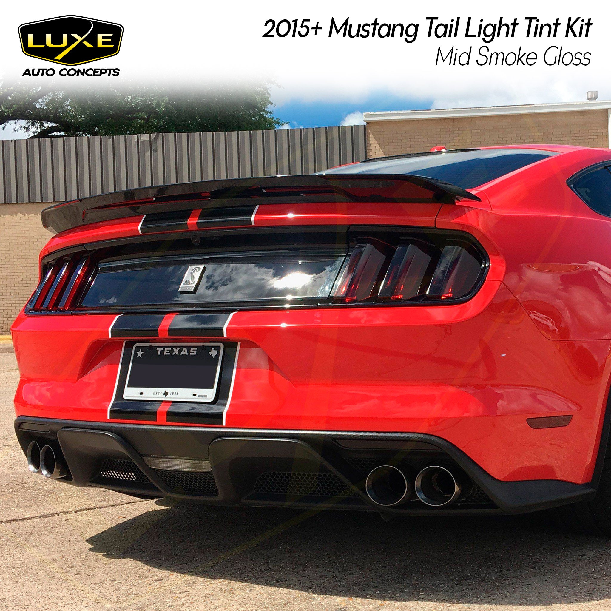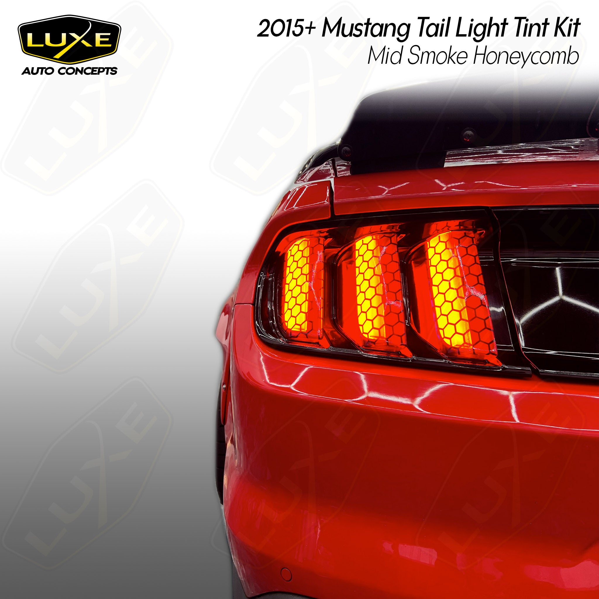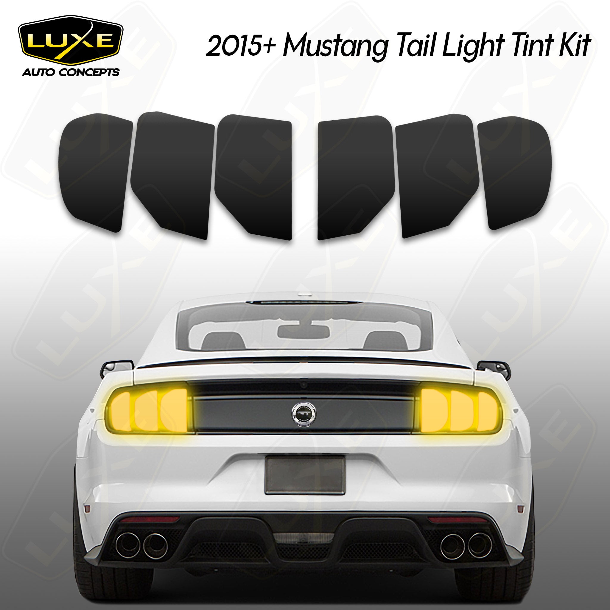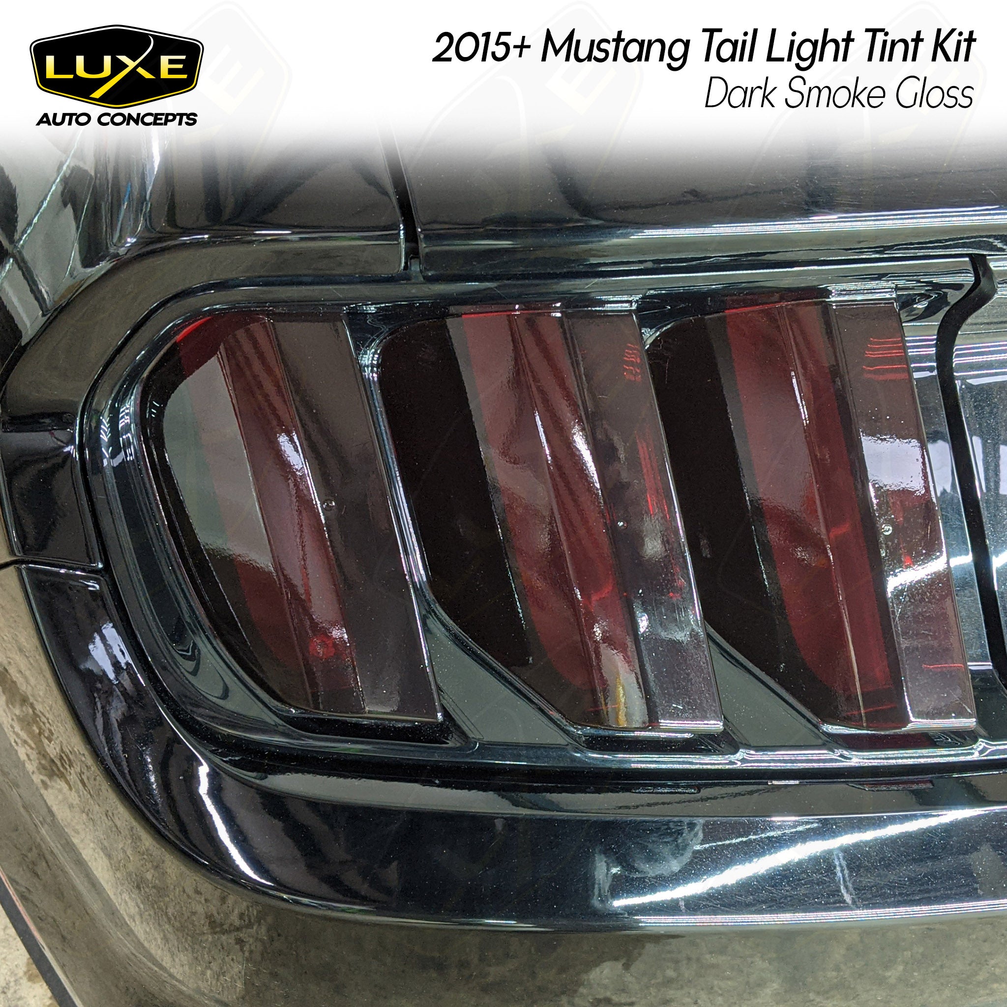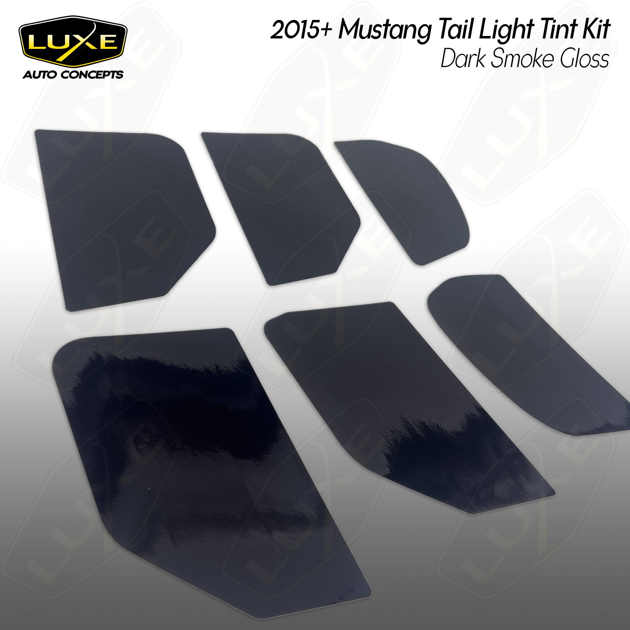 Our 2015-2023 Ford Mustang/Shelby tail light tint comes in a variety of shades and finishes. Transform the look of your vehicle with finishes only available with Luxe Auto Concepts! LightWrap kits are dry application and repositionable allowing you to tint easier and faster than any other film on the market. Our pre-cut kits are designed in house to ensure the most precise fitment.