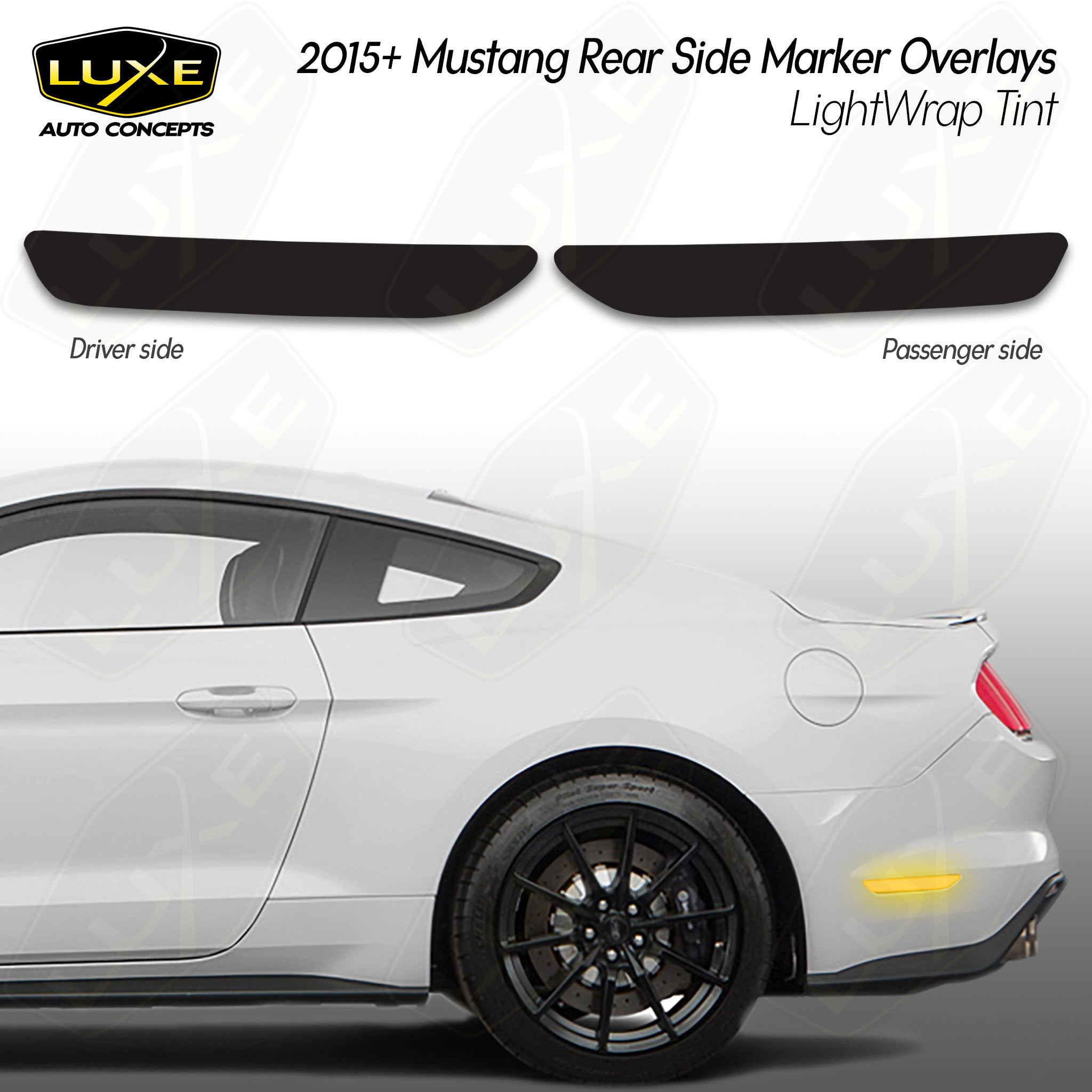 This 2-piece rear side marker tint kit includes custom fit overlays for your 2015-23 Ford Mustang.  Everything from the shape of the overlay to the LightWrap tint is designed by Luxe to be the best on the market.  We make these overlays using the same LightWrap vinyl that we sell to professional installers all over the world.  It will not shrink and crack like calendar vinyl or Chinese-made vinyl and can be removed without causing any damage to the vehicle.