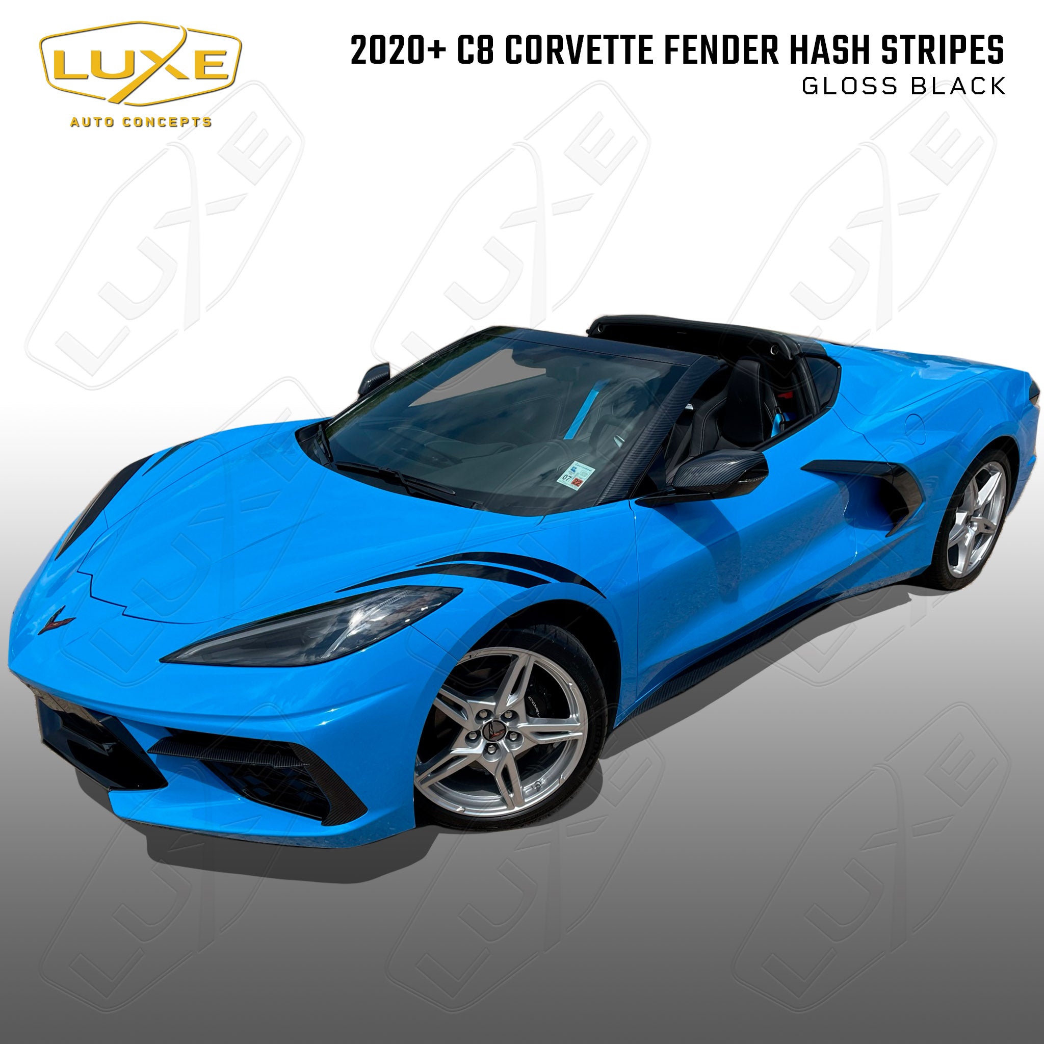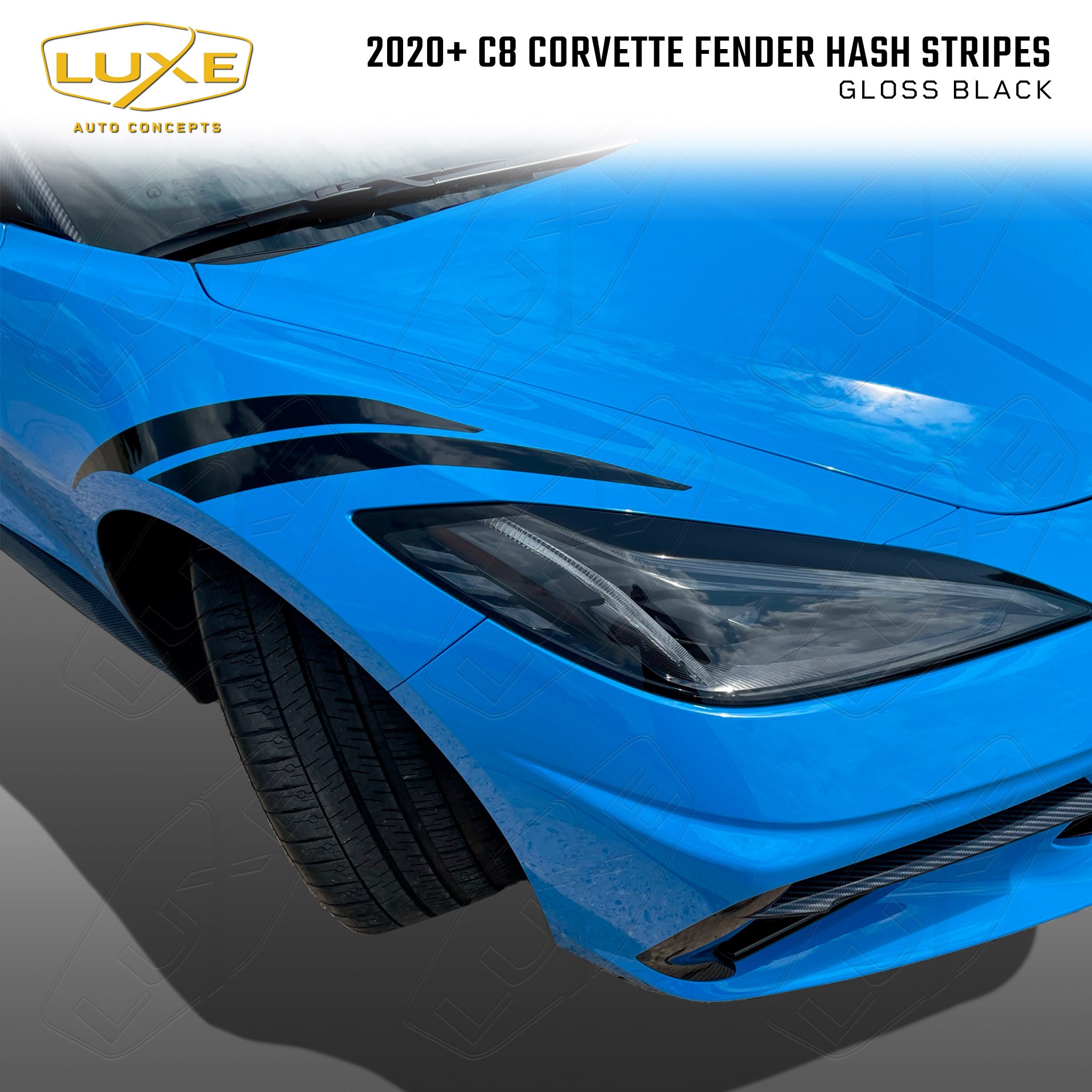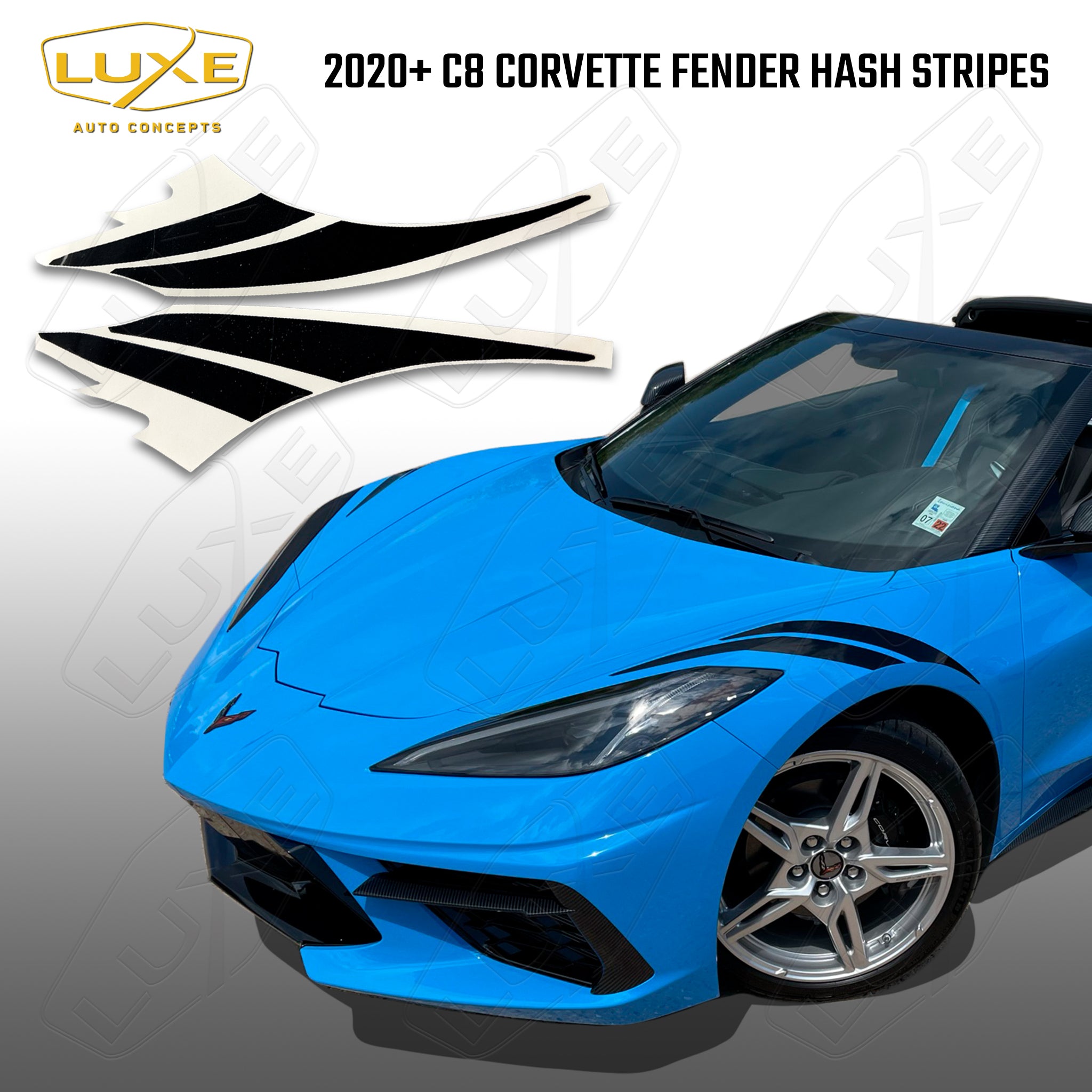 This fender hash stripes decal is made to fit the 2020+ Chevrolet Corvette C8. Do not settle for eBay decals or other companies using wet-install vinyl when you could be using the same technologies as the pros and achieving the same results. Our KPMF matte perfect black vinyl will match the sheen and color of OEM black graphics, and we offer many colors and premium textures for those wanting to stand out. You can also contact our custom department if there is a color we don't stock or if you have an idea you want to bring to life.