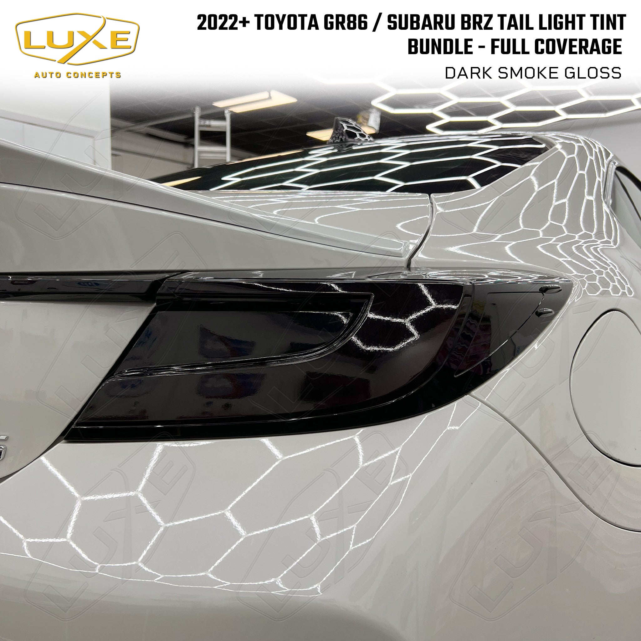 This 6-piece tail light tint kit includes custom fit overlays for your 2022+ Toyota GR86 or 2022+ Subaru BRZ. This kit covers every light/marker on your tail light. Everything from the shape of the overlay to the LightWrap tint is designed by Luxe to be the best on the market.  We make these overlays using the same LightWrap vinyl that we sell to professional installers all over the world.  It will not shrink and crack like calendar vinyl or Chinese-made vinyl and can be removed without causing any damage to the vehicle.