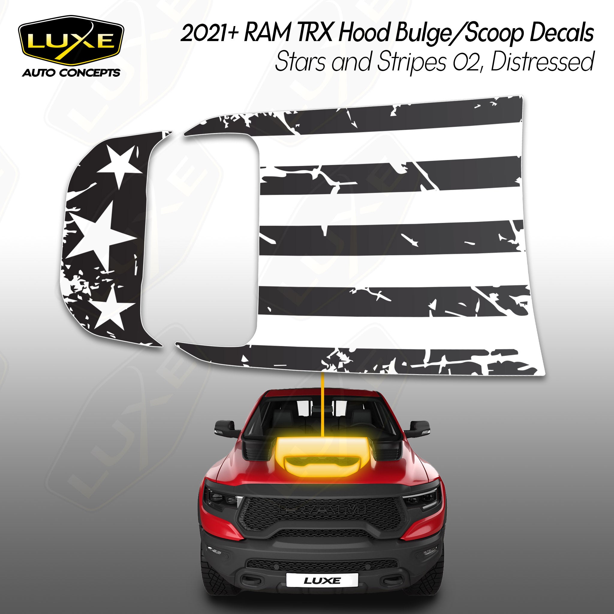 RAM TRX Hood Bulge/Scoop Decals Kit - Stars and Stripes 2, Distressed